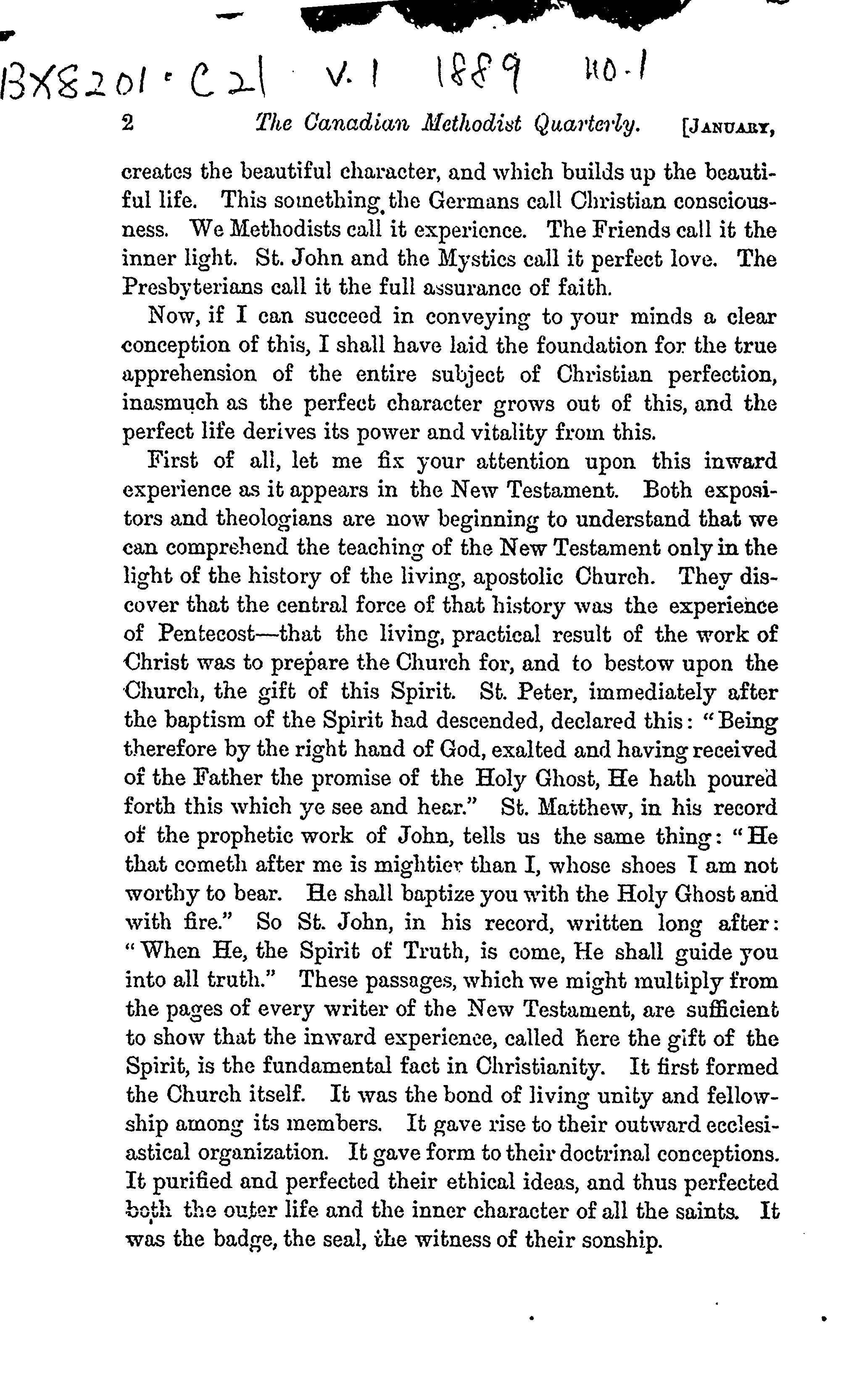 The Canadian Methodist quarterly. : The Canadian Methodist quarterly : Vol. 1, no. 1 (Jan. 1889)
