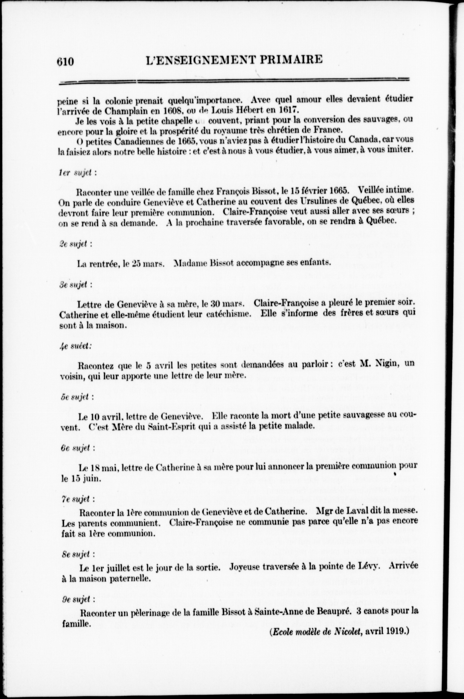 L'enseignement primaire : 40e année, no 10 (juin 1919)