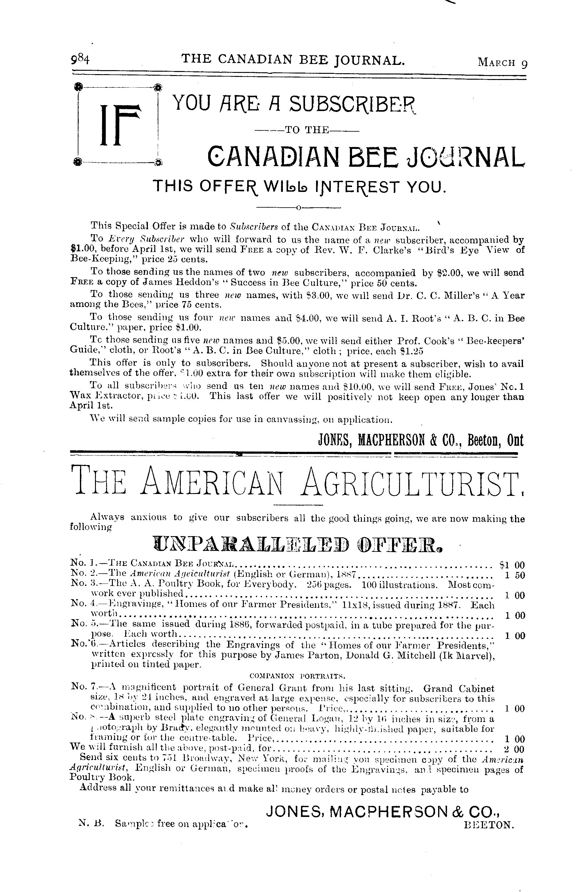 - The Canadian bee journal : Vol. 2, no. 50 (Mar. 9, 1887)