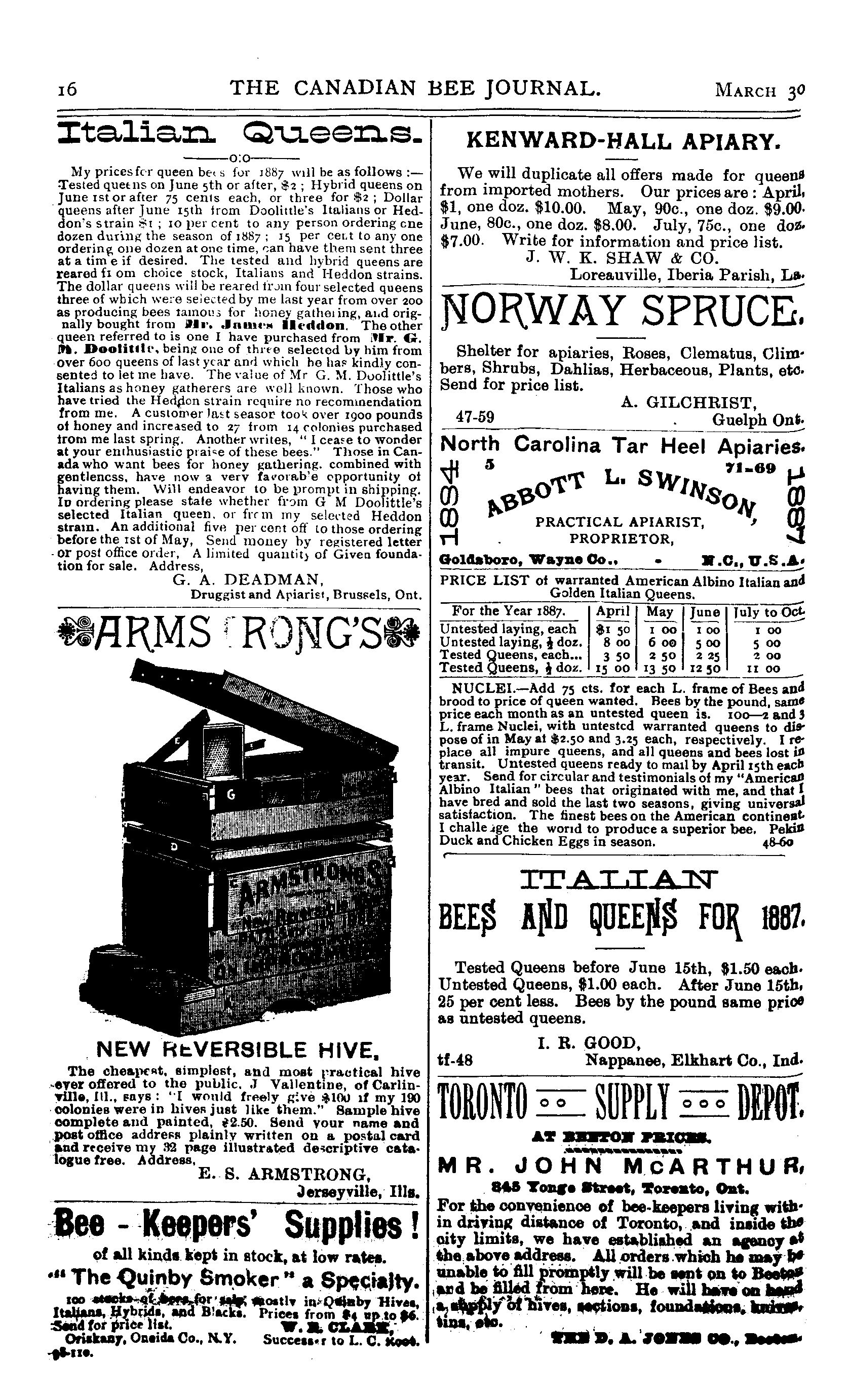 - The Canadian bee journal : Vol. 3, no. 1 (Mar. 30, 1887)
