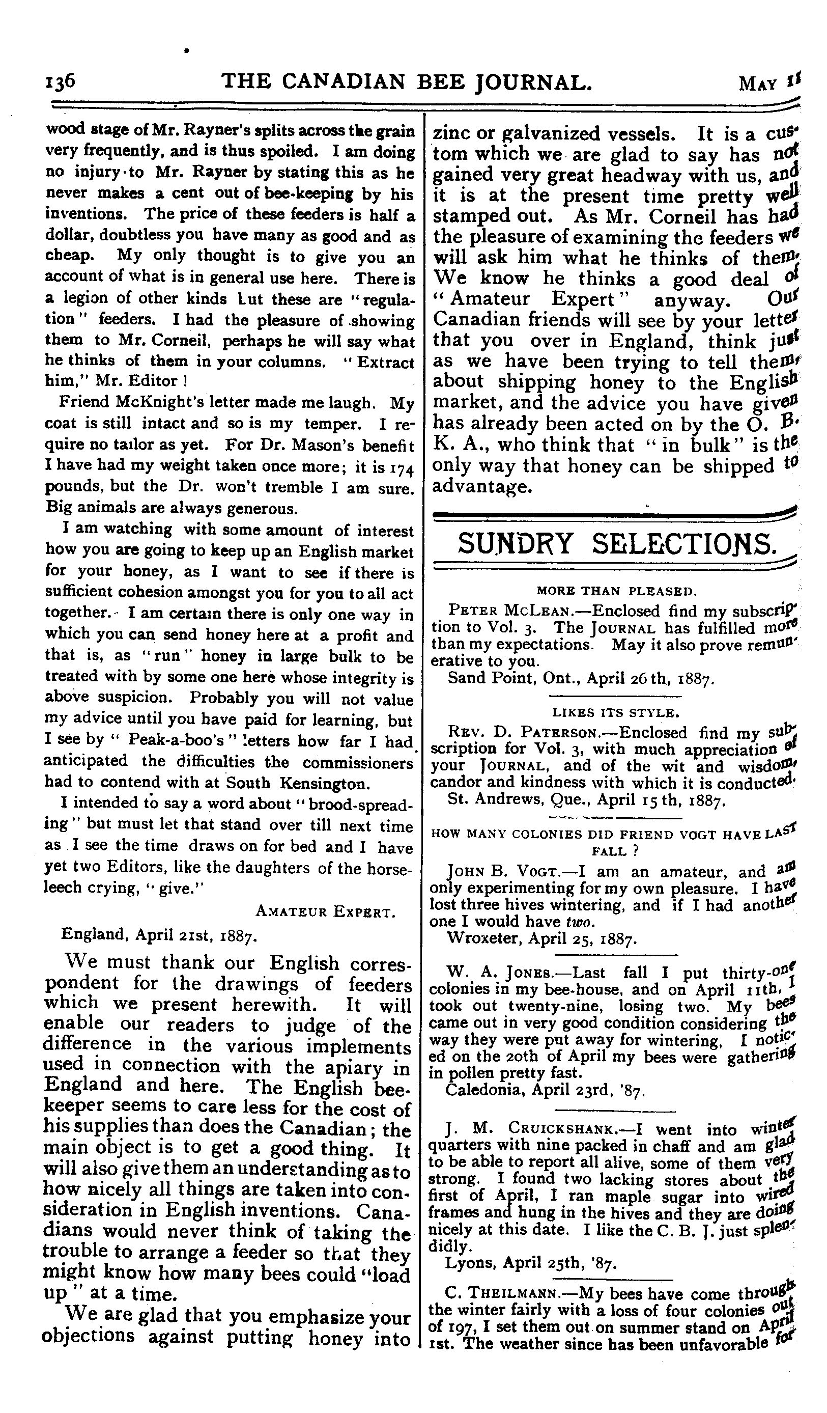- The Canadian bee journal : Vol. 3, no. 7 (May 11, 1887)