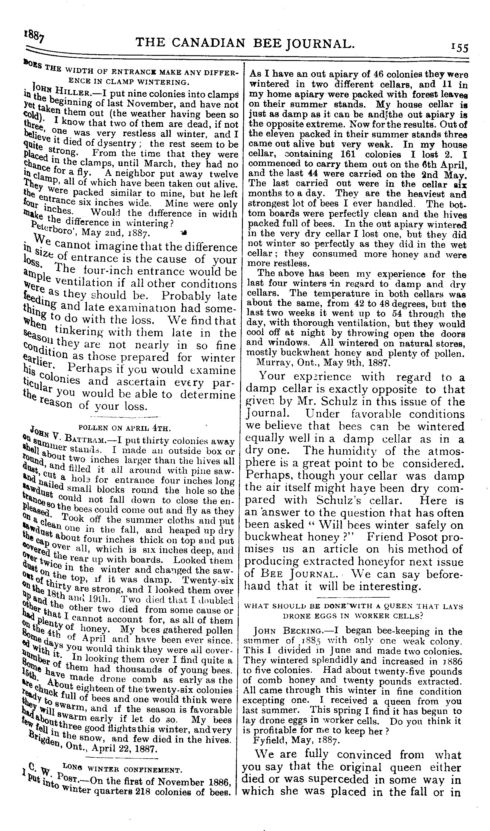 - The Canadian bee journal : Vol. 3, no. 8 (May 18, 1887)