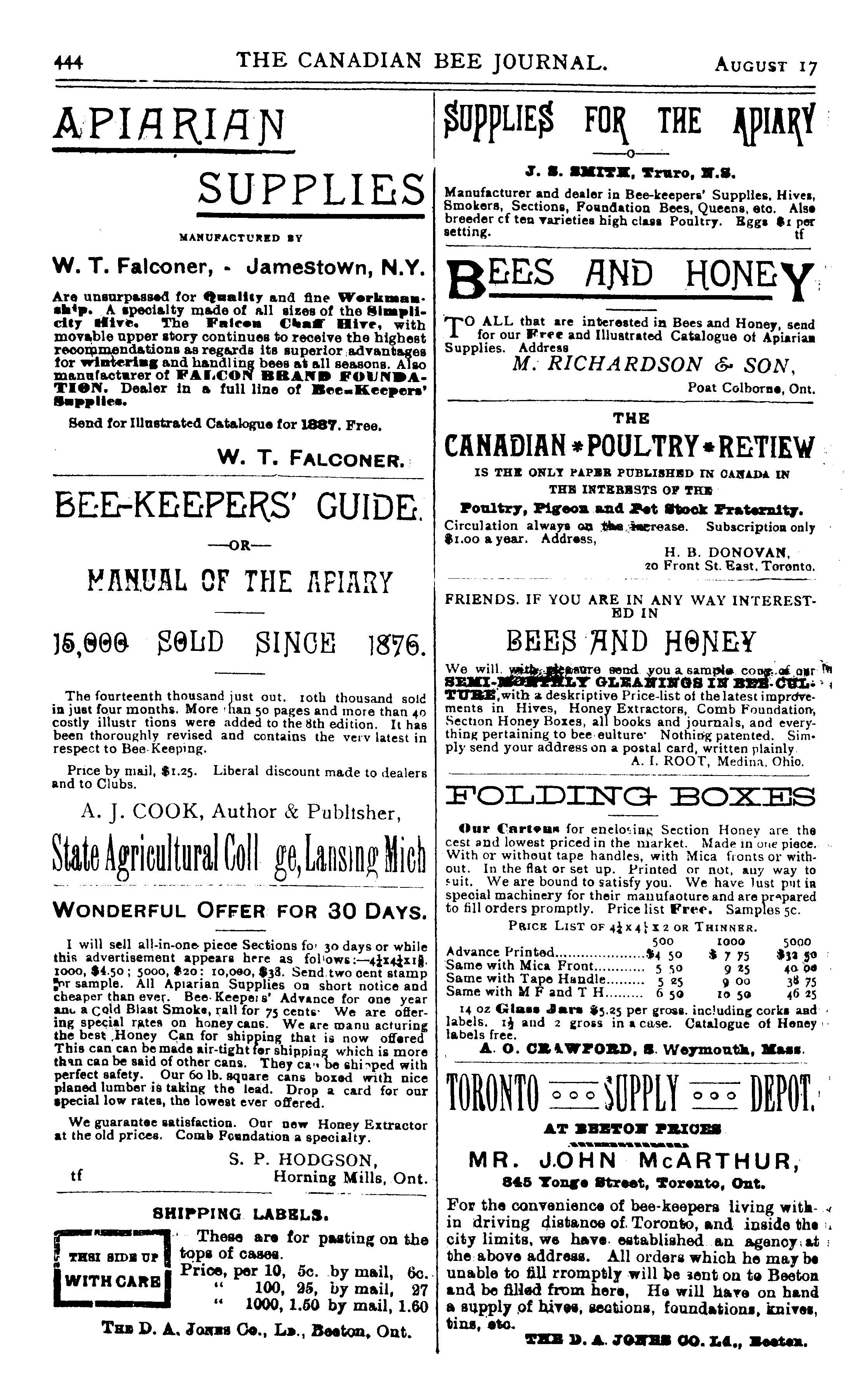 - The Canadian bee journal : Vol. 3, no. 21 (Aug. 17, 1887)