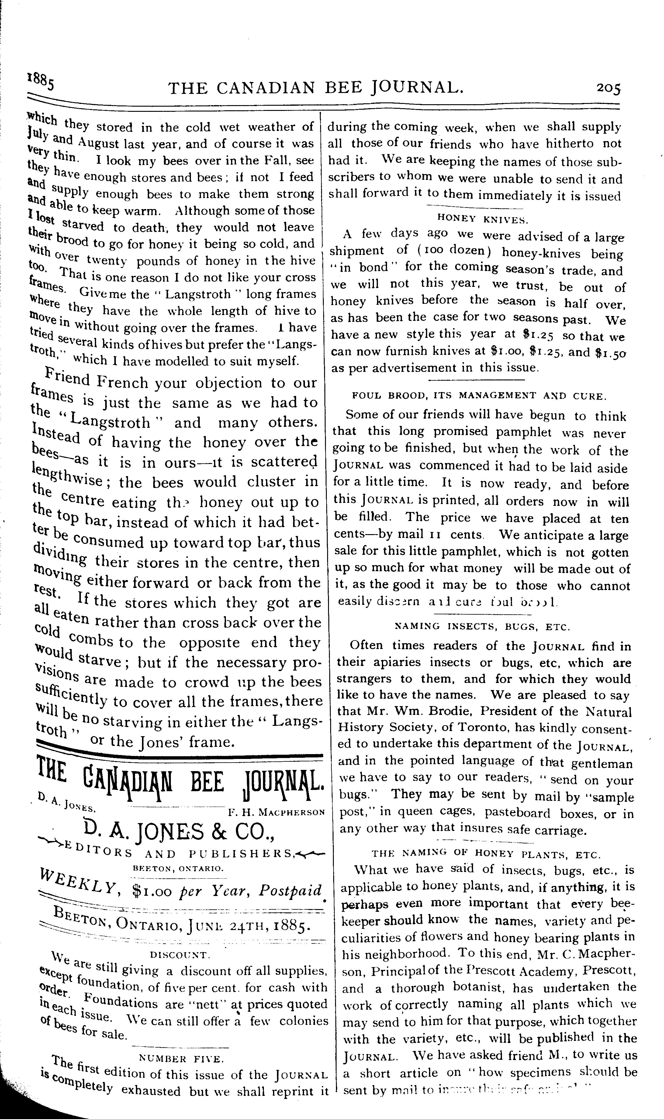 - The Canadian bee journal : Vol. 1, no. 13 (June 24, 1885)