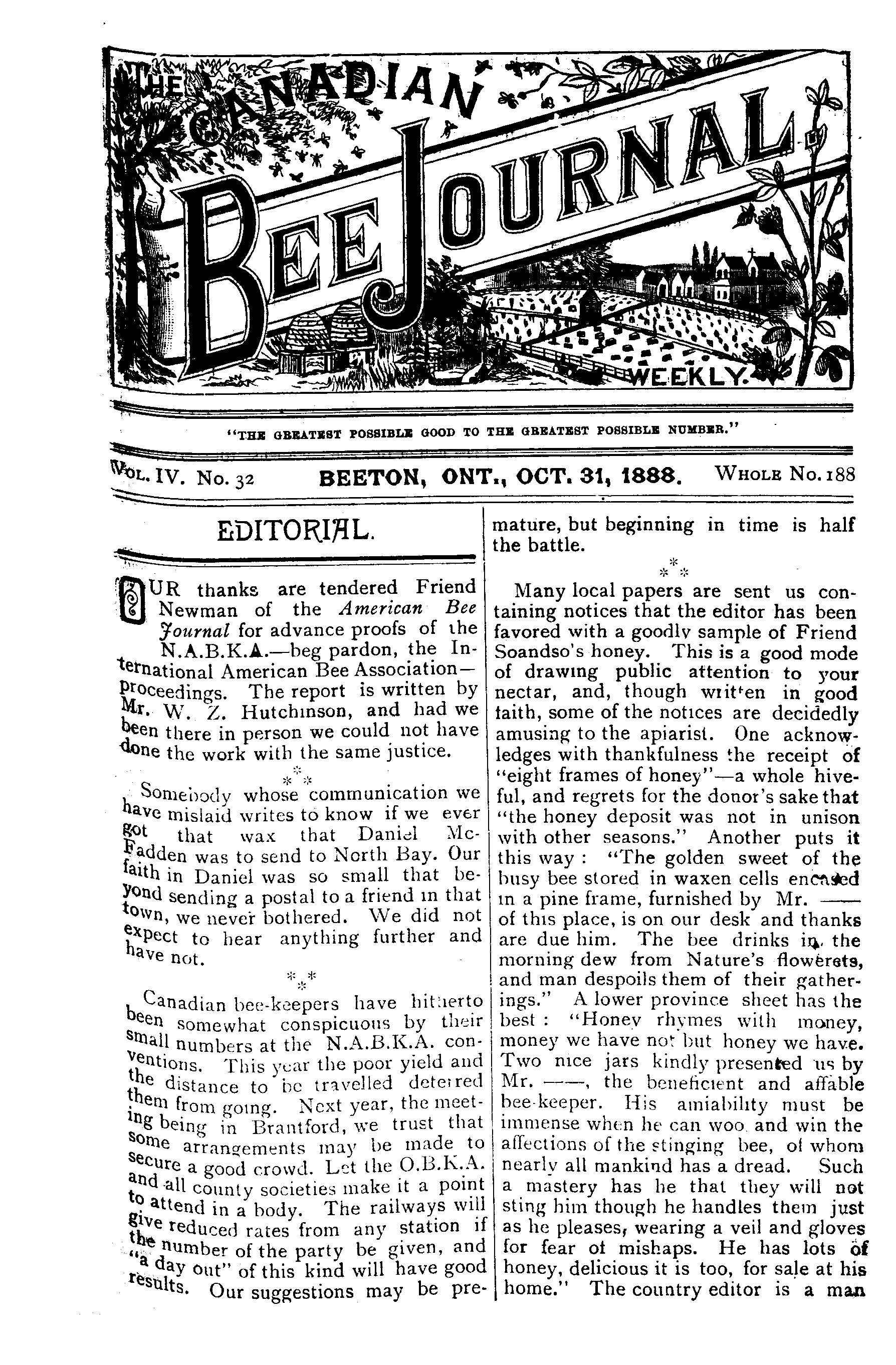 - The Canadian bee journal [Vol. 4, no. 32 (Oct. 31, 1888)]