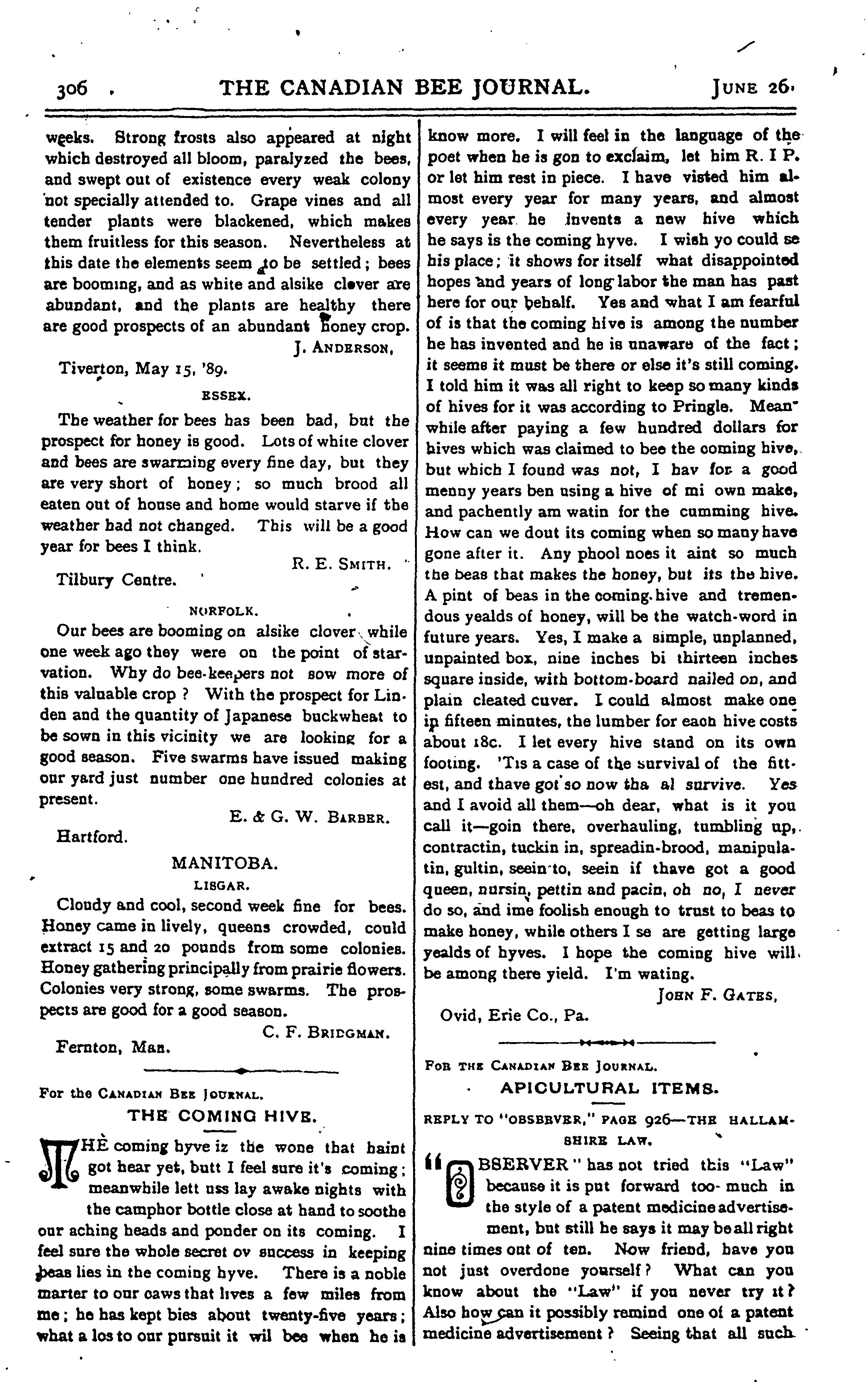 The Canadian bee journal : [Vol. 5, no. 14 (June 26, 1889)]