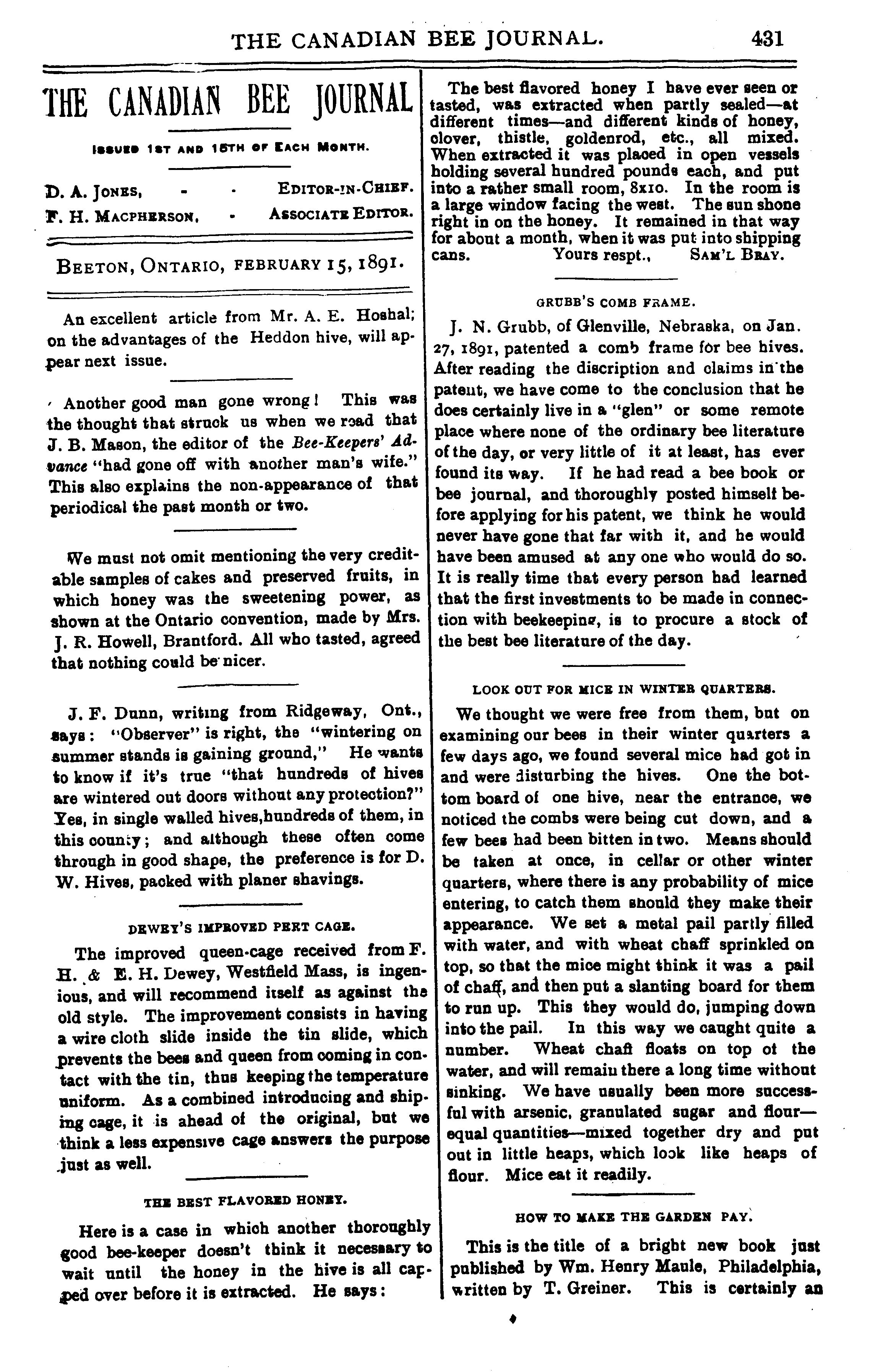 - The Canadian bee journal [Vol. 6, no. 22 (Feb. 15, 1891)]