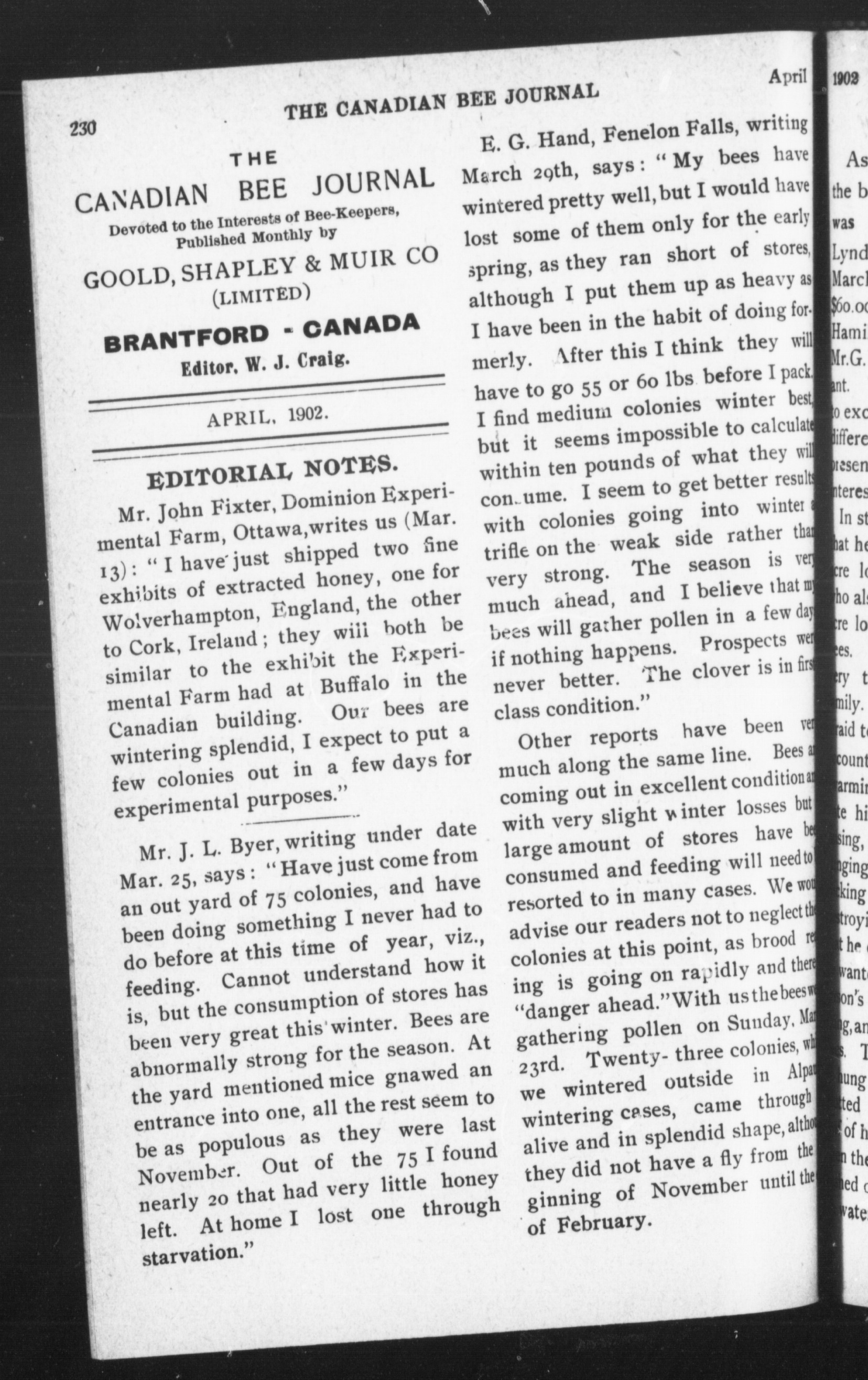 The Canadian bee journal : New ser. v. 9, no. 10 (Apr. 1902)