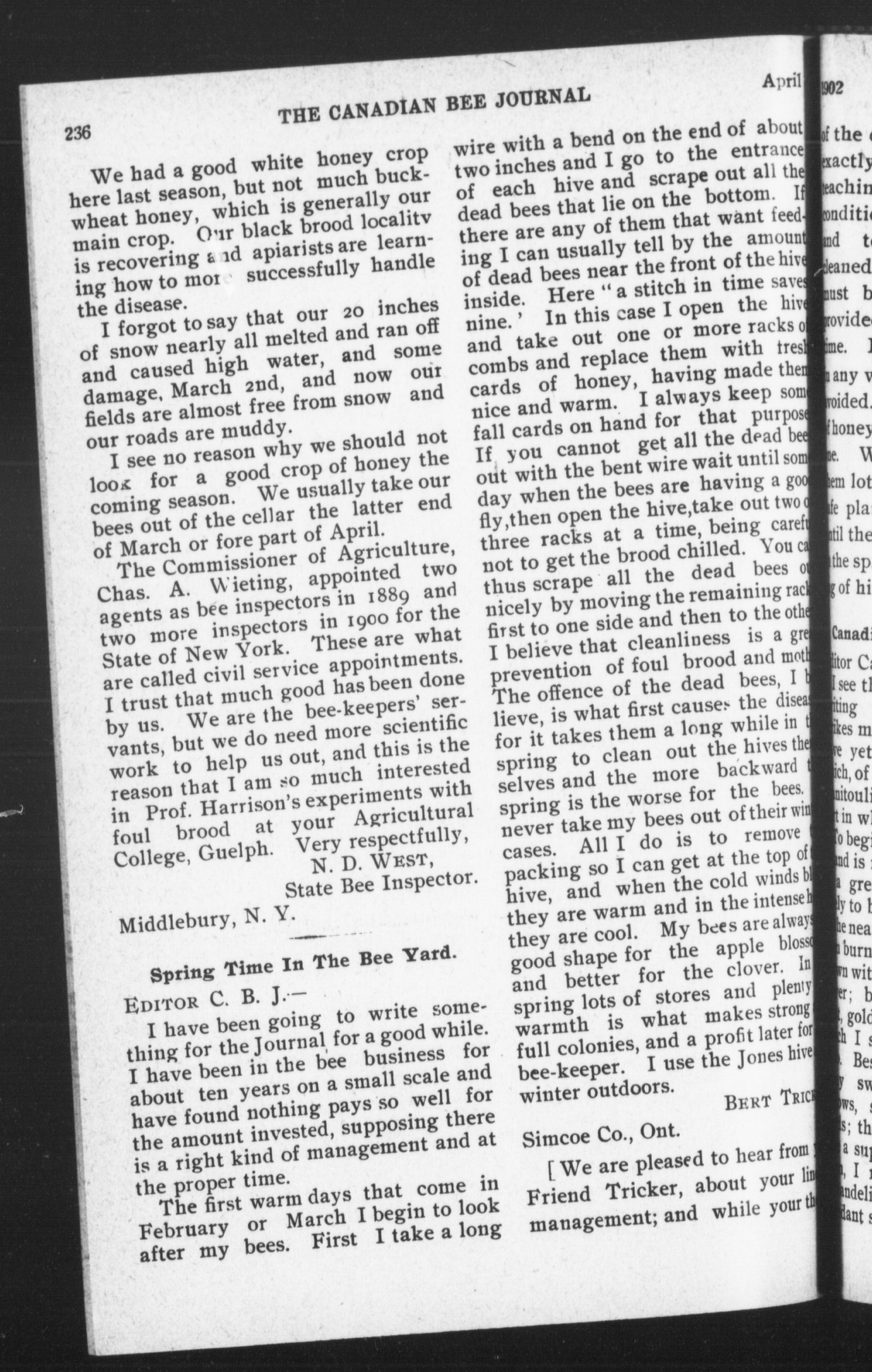 The Canadian bee journal : New ser. v. 9, no. 10 (Apr. 1902)