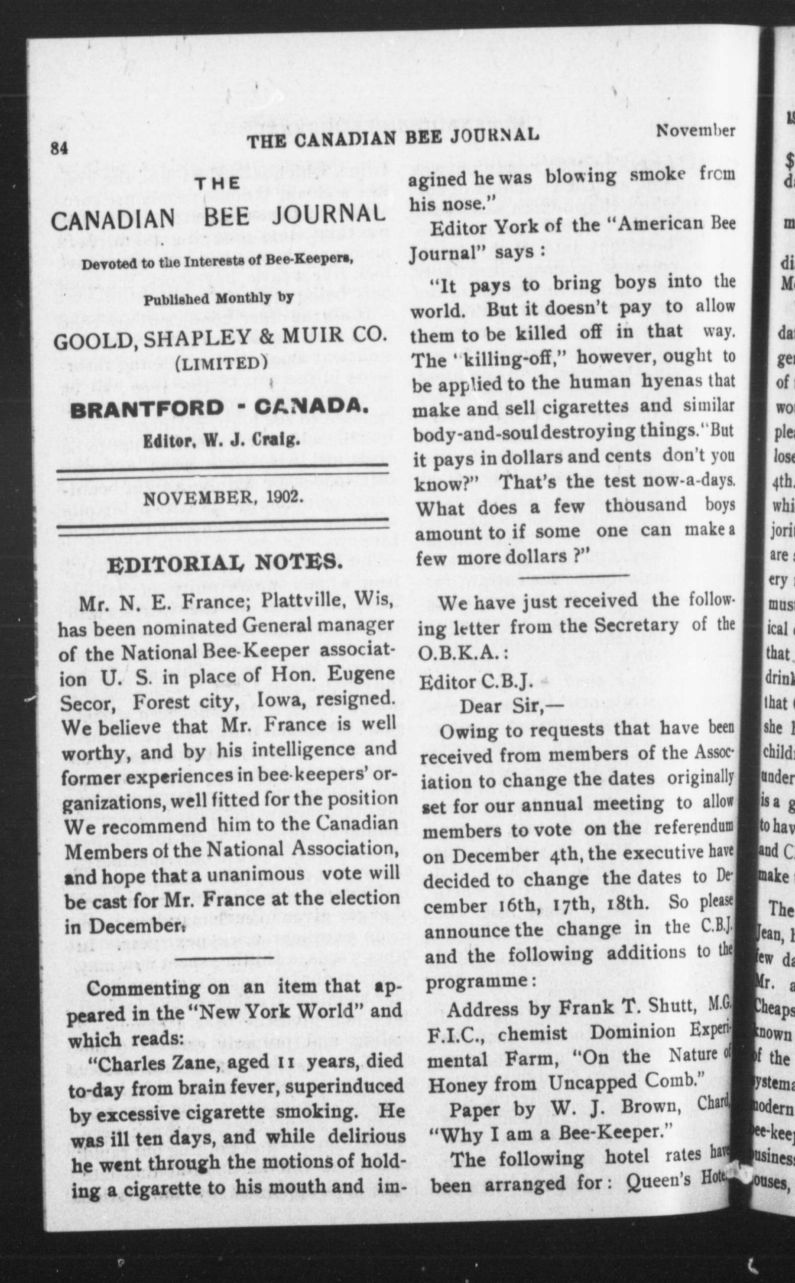 The Canadian bee journal : New ser. v. 10, no. 4 [i.e. 5] (Nov. 1902)
