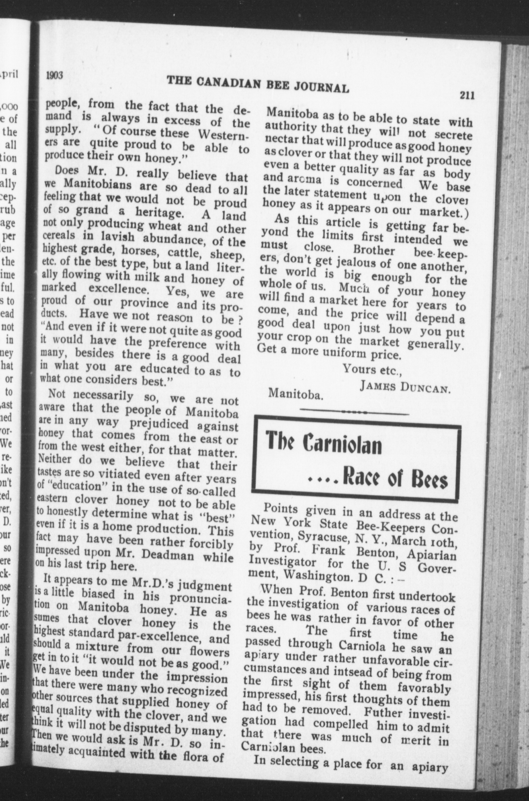 The Canadian bee journal : New ser. v. 10, no. 9 [i.e. 10] (Apr. 1903)