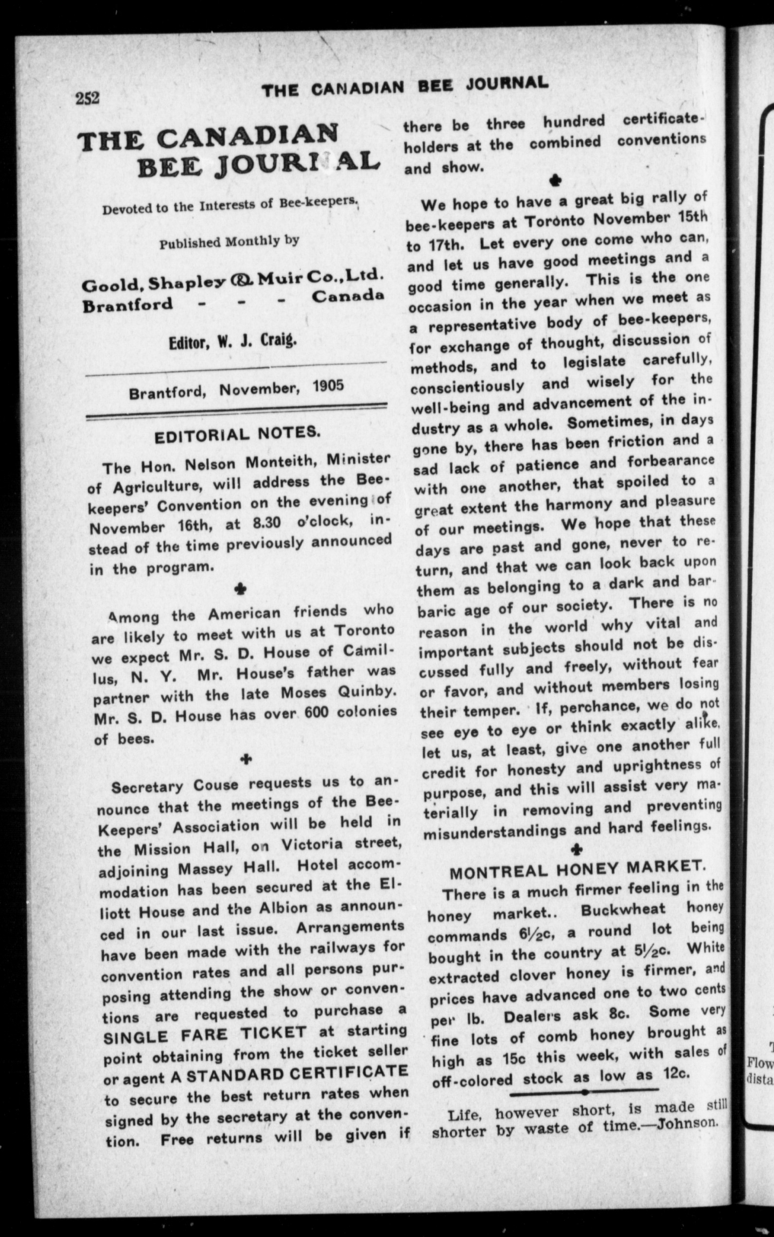 The Canadian bee journal : New ser. v. 13, no. 11 (Nov. 1905)
