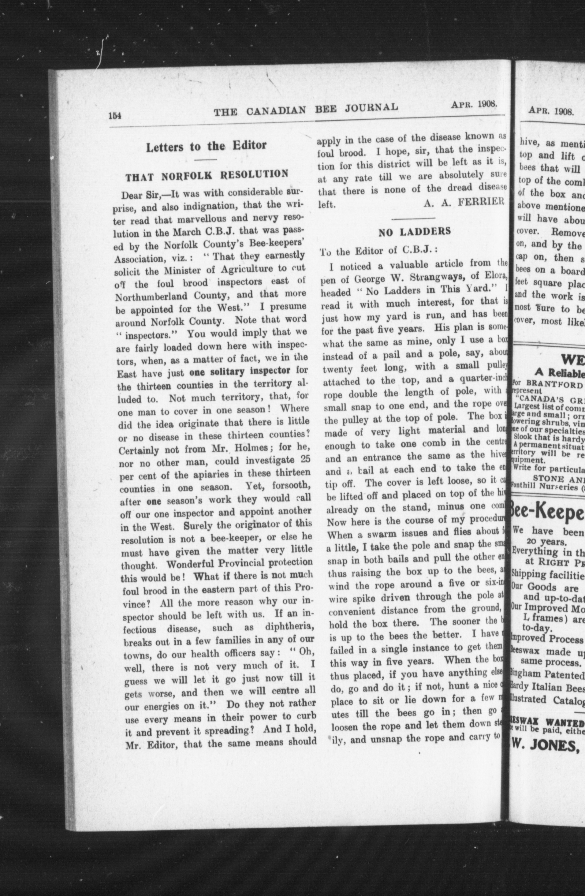 The Canadian bee journal : Vol. 16, no. 4 (Apr. 1908)