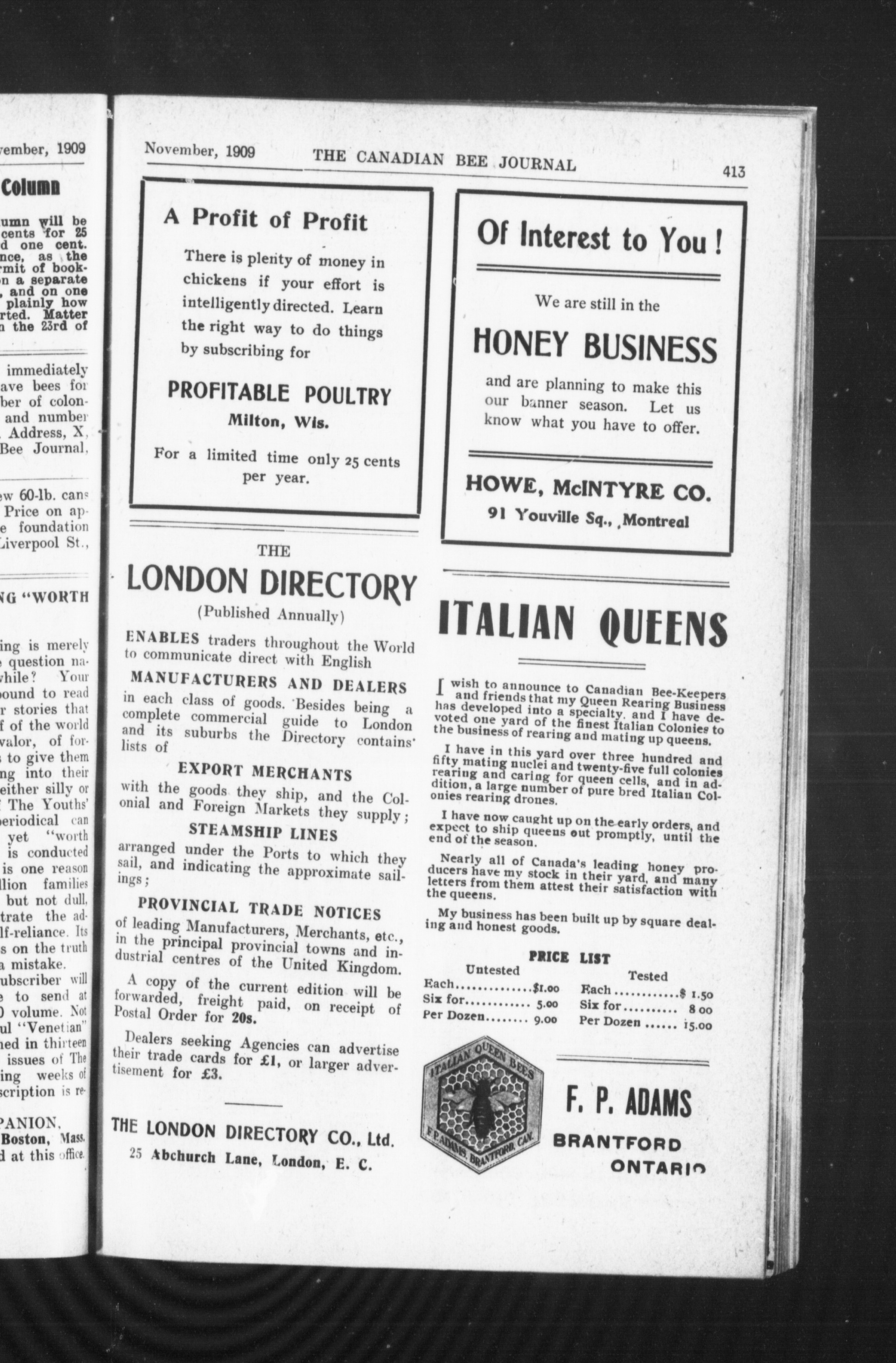 The Canadian bee journal : Vol. 17, no. 11 (Nov. 1909)