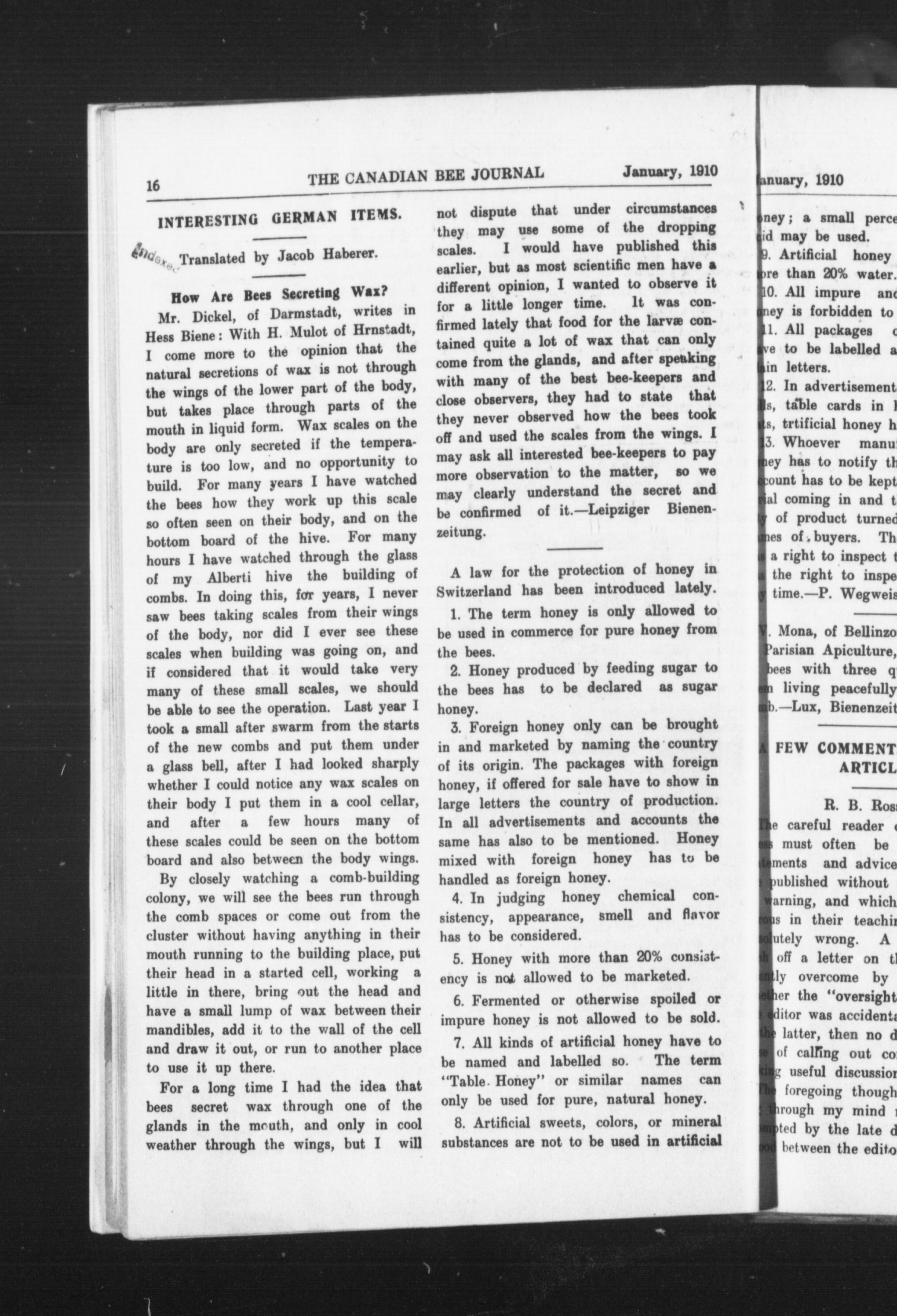 The Canadian bee journal : Vol. 18, no. 1 (Jan. 1910)