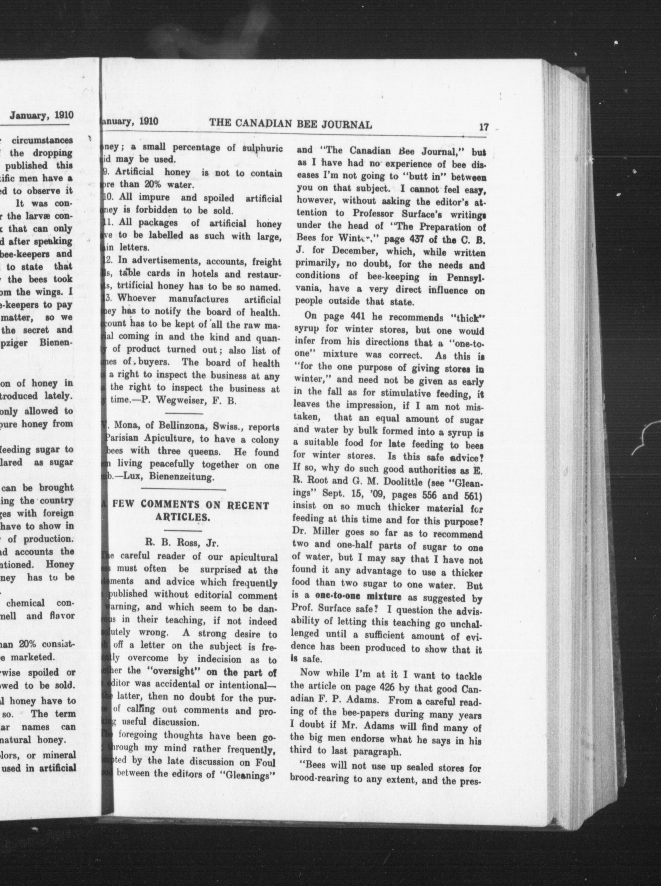 The Canadian bee journal : Vol. 18, no. 1 (Jan. 1910)