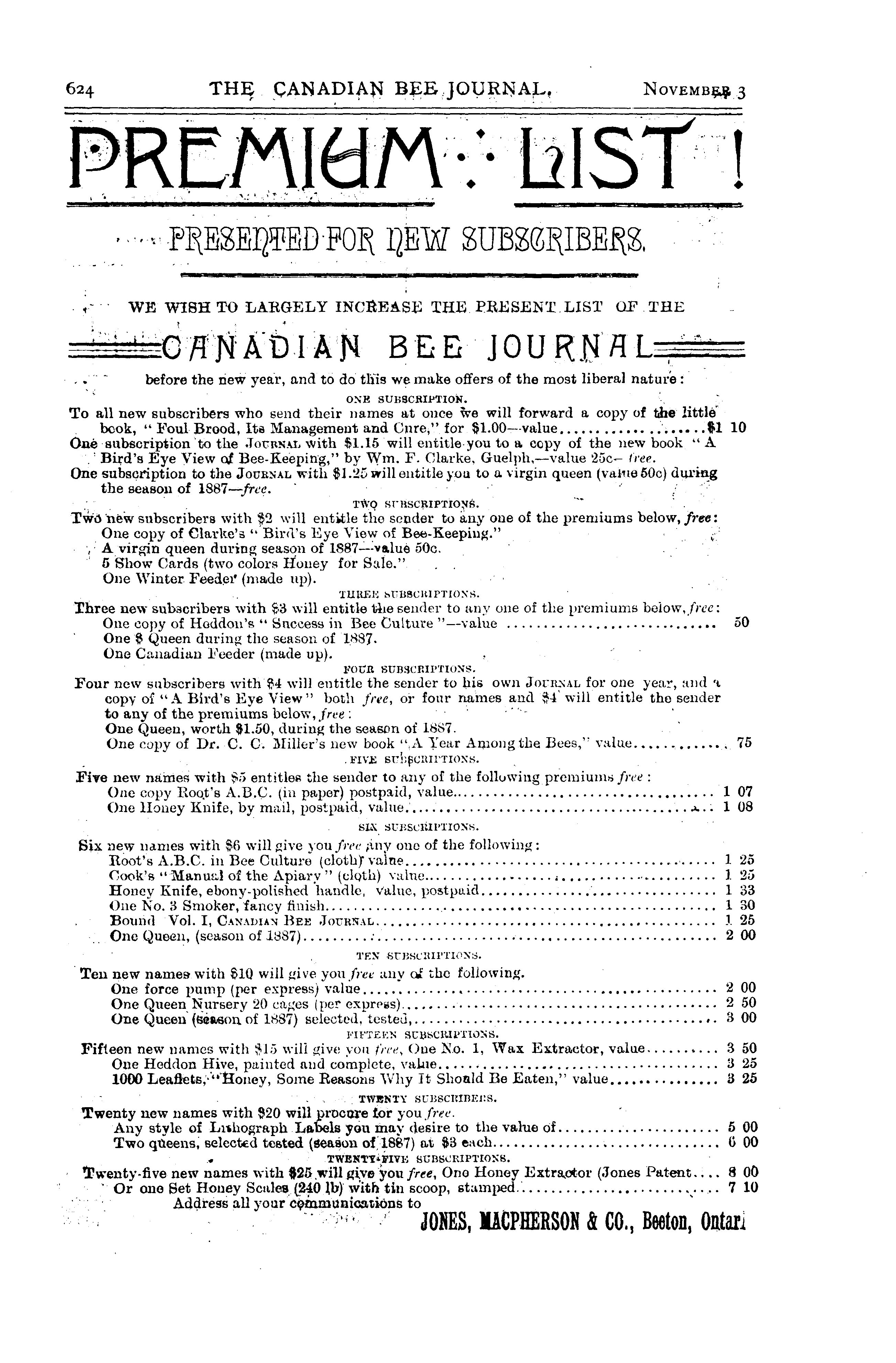 The Canadian bee journal [Vol. 2, no. 32 (Nov. 3, 1886)]