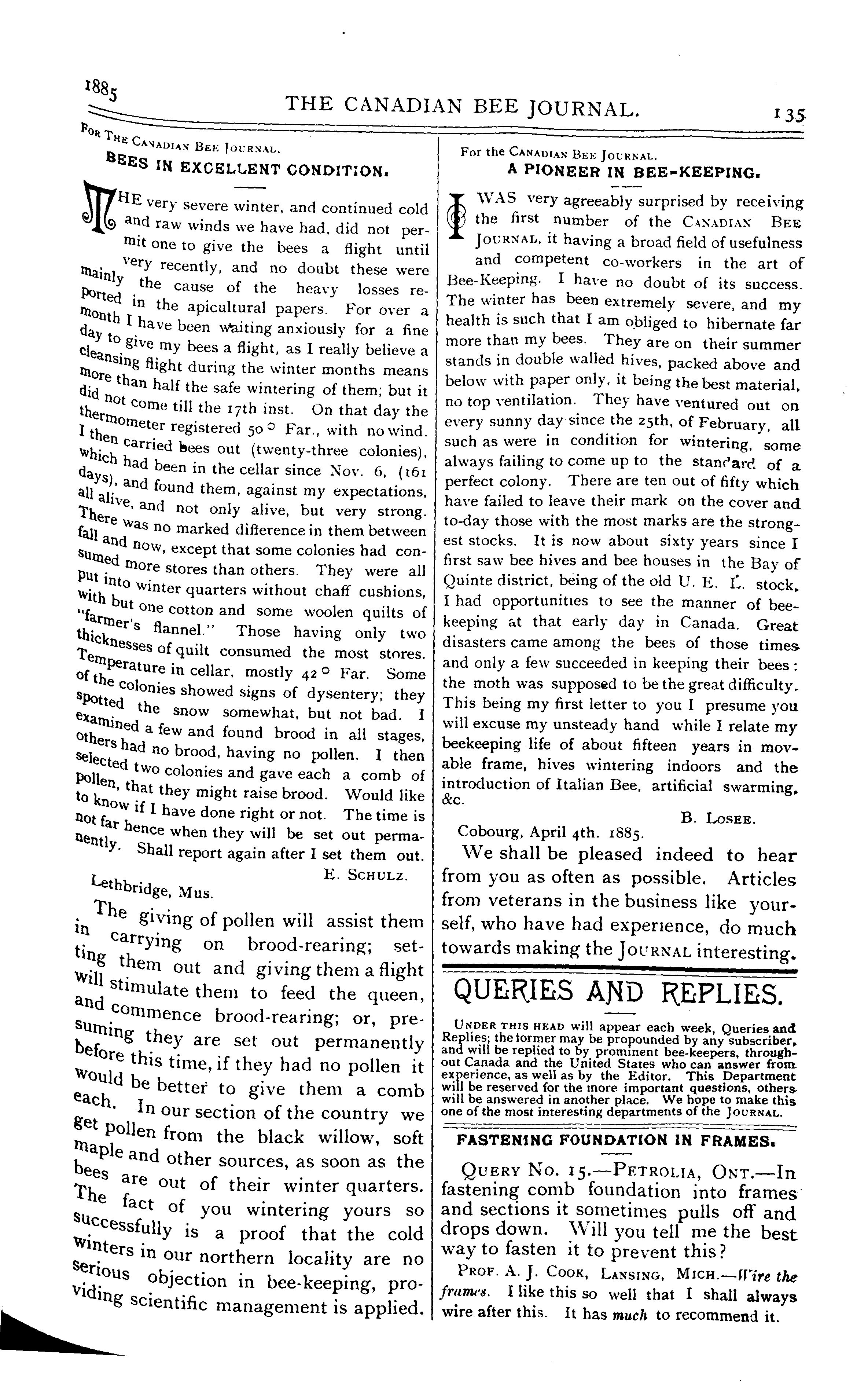 The Canadian bee journal [Vol. 1, no. 9 (May 27, 1885)]
