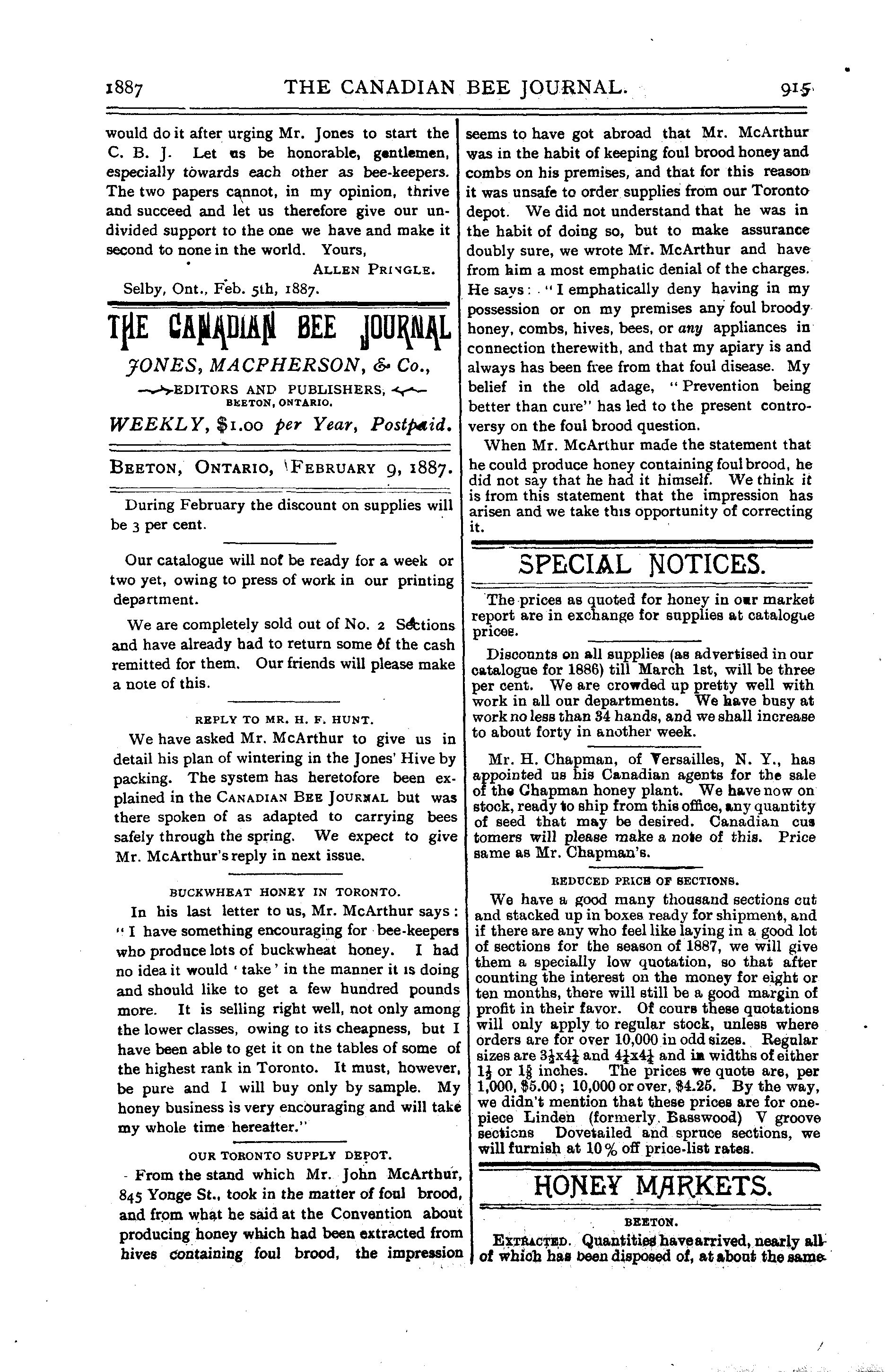 - The Canadian bee journal [Vol. 2, no. 46 (Feb. 9, 1887)]