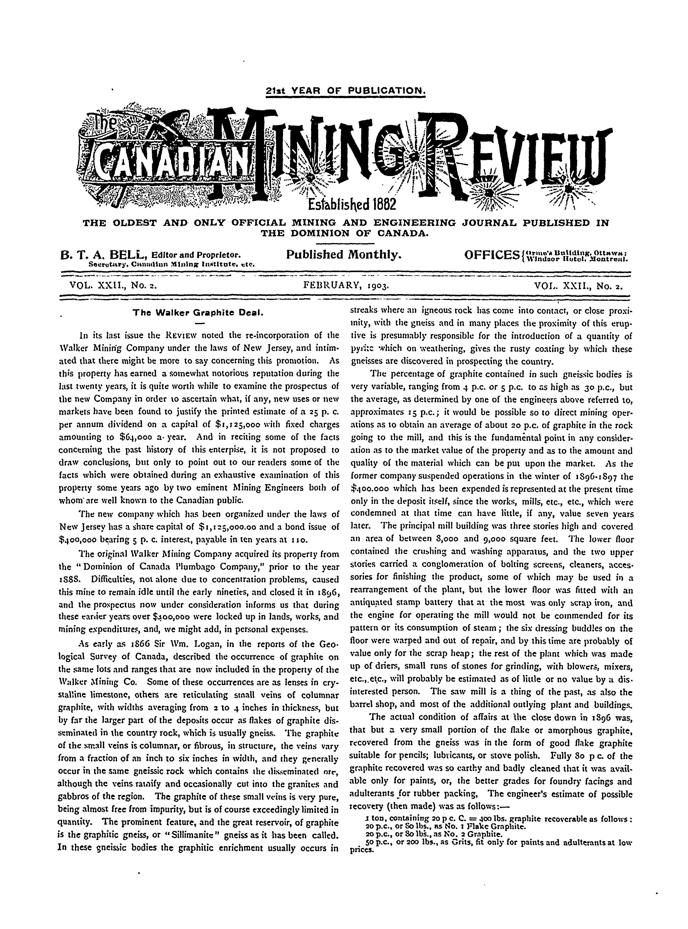 - The Canadian mining review [Vol. 22, no. 2 (Feb. 1903)]