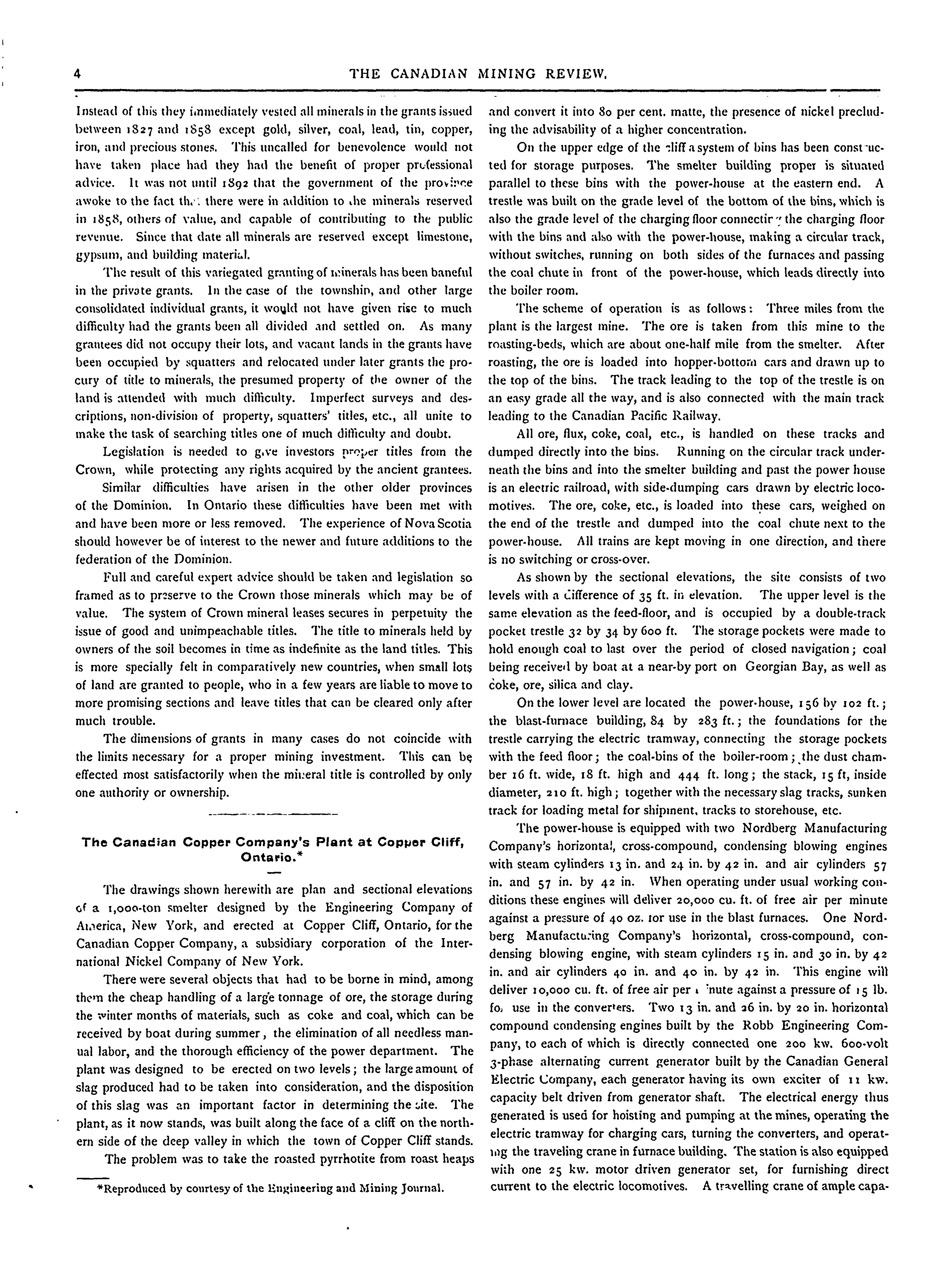 The Canadian mining review : [Vol. 23, no. 1 (Jan. 1904)]