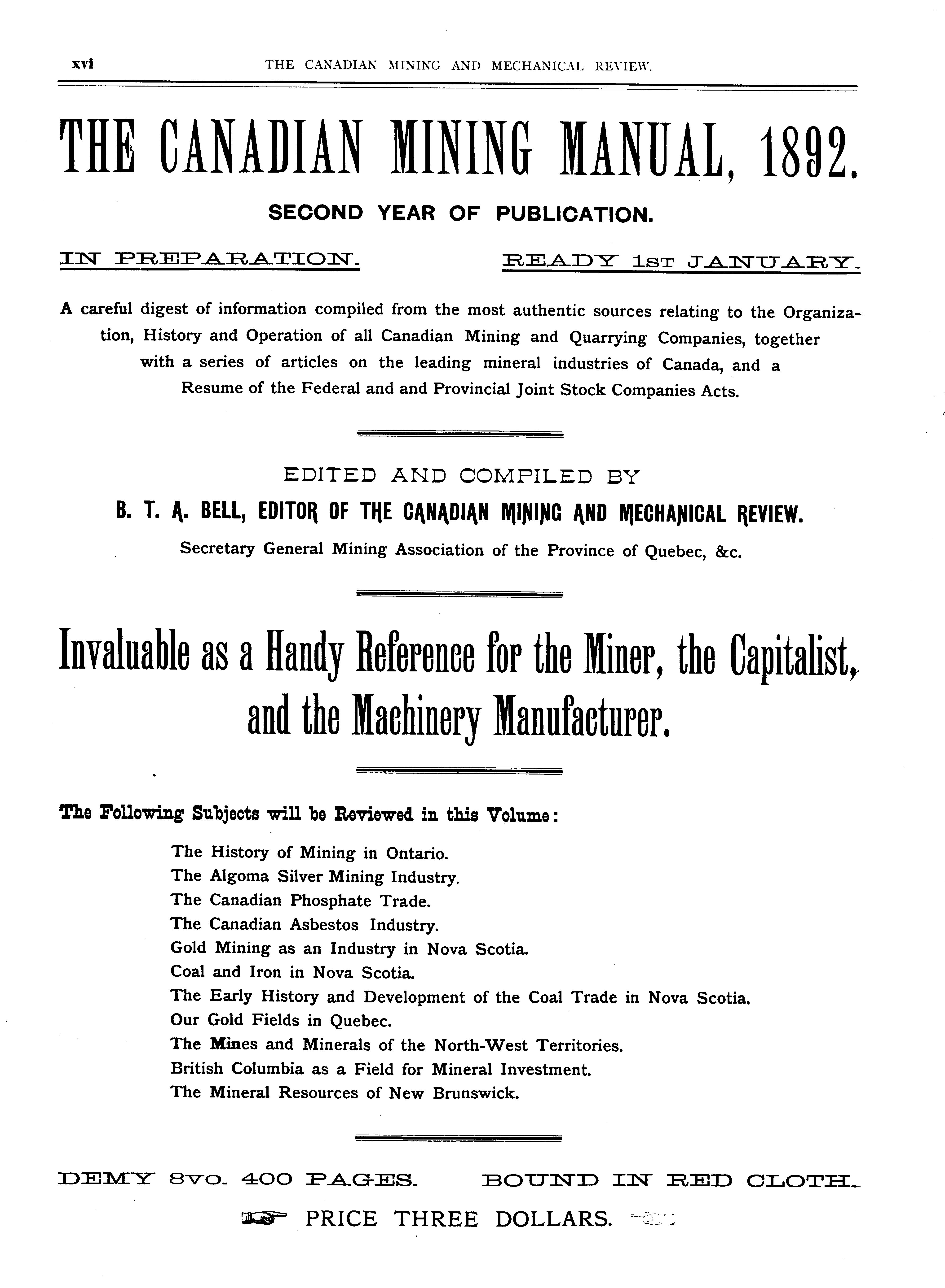 - Canadian mining and mechanical reviewCanadian mining & mechanical review [Vol. 10, no. 11 (Nov. 1891)]