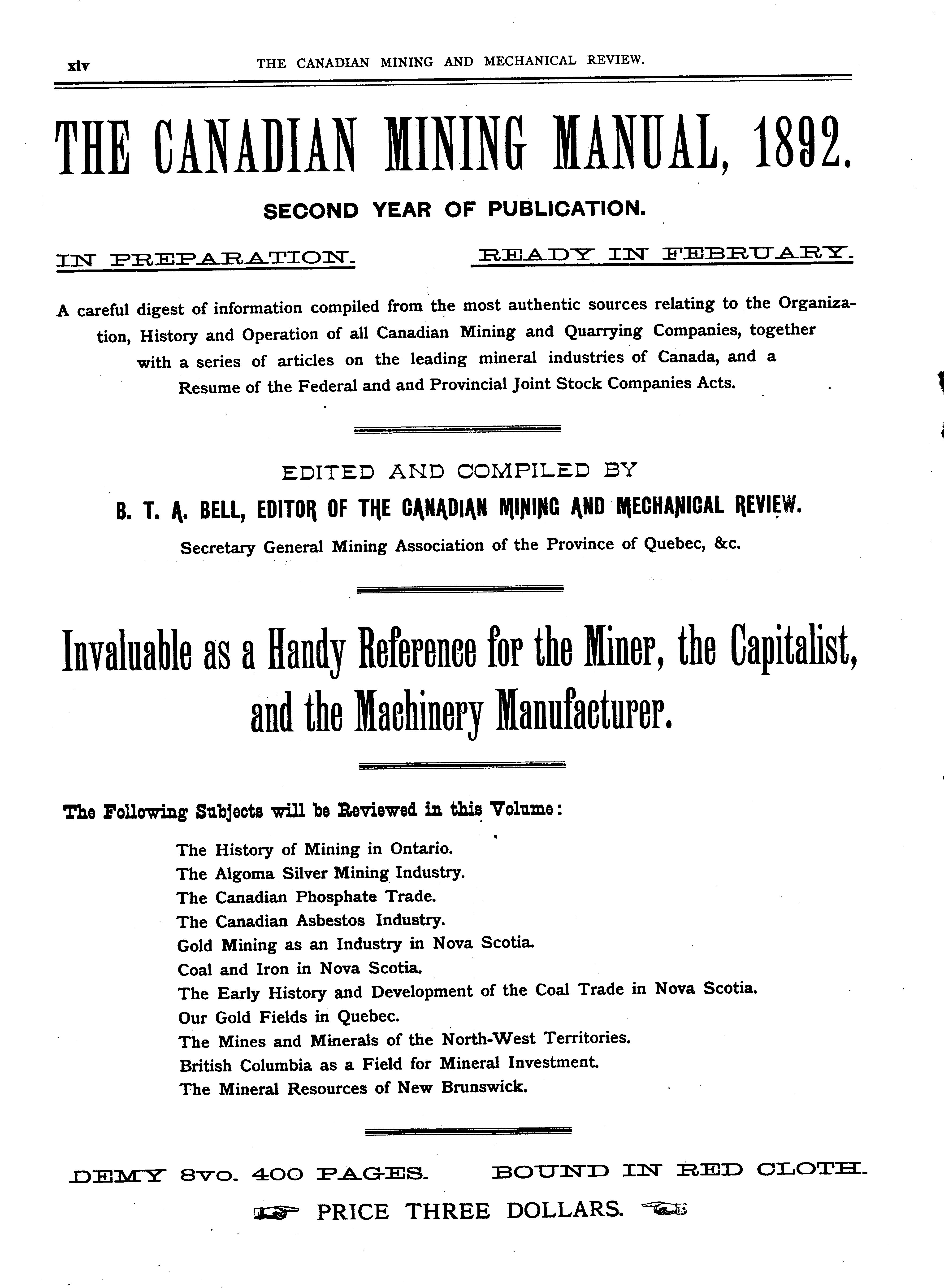 - Canadian mining and mechanical reviewCanadian mining & mechanical review [Vol. 11, no. 2 (Feb. 1892)]