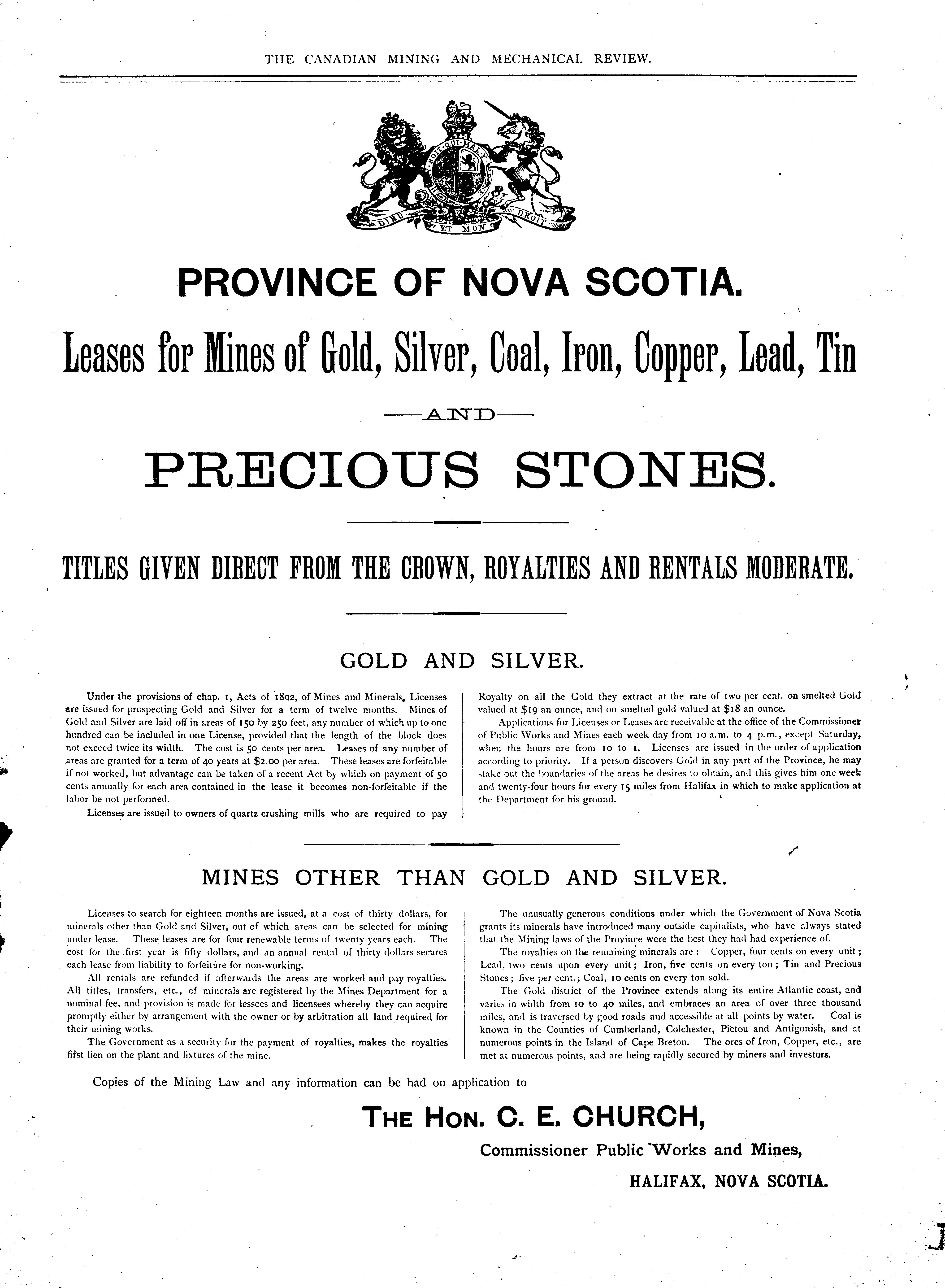 Canadian mining and mechanical reviewCanadian mining & mechanical review [Vol. 11, no. 8 (Aug. 1892)]