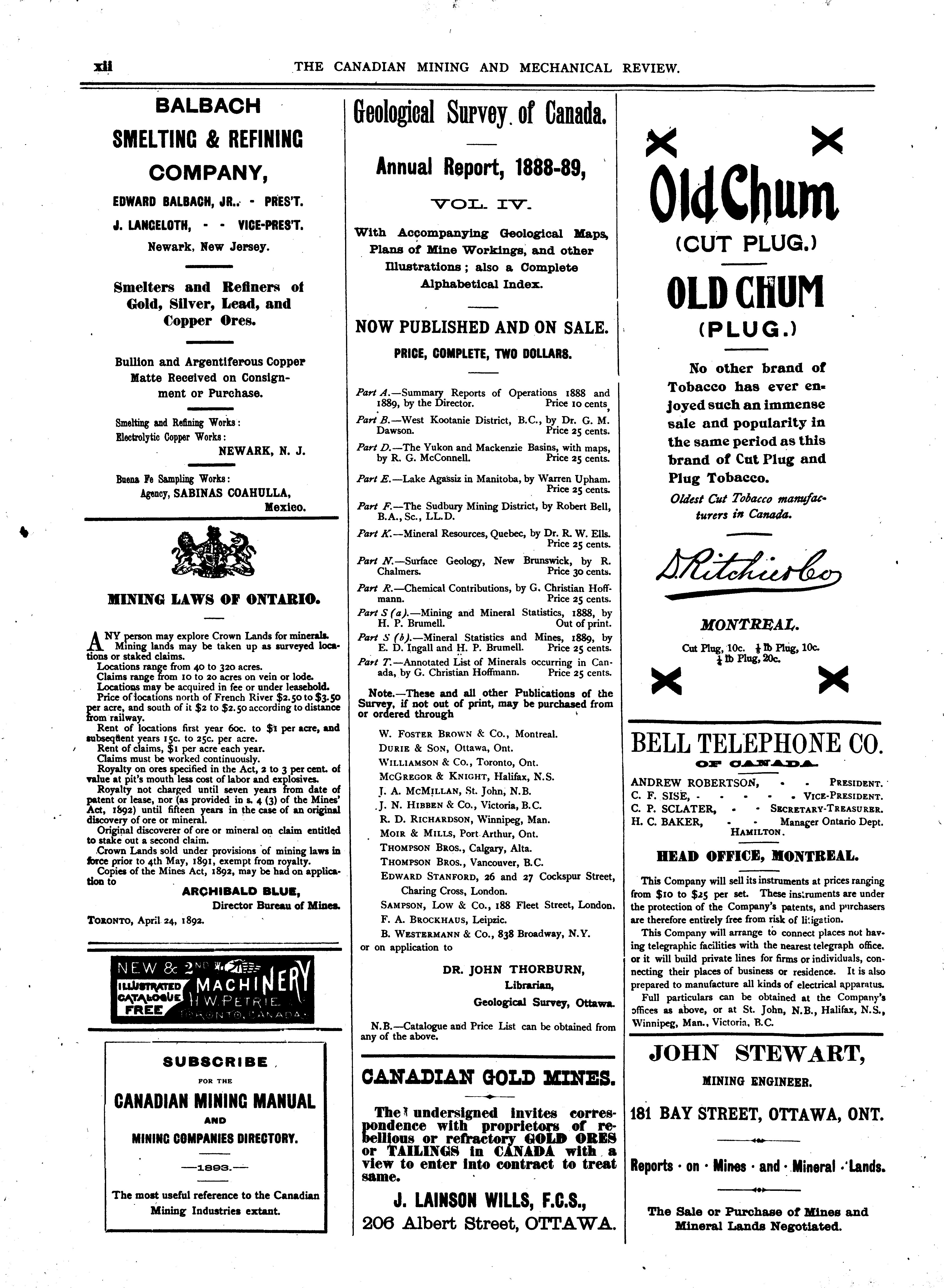 - Canadian mining and mechanical reviewCanadian mining & mechanical review [Vol. 11, no. 12 (Dec. 1892)]