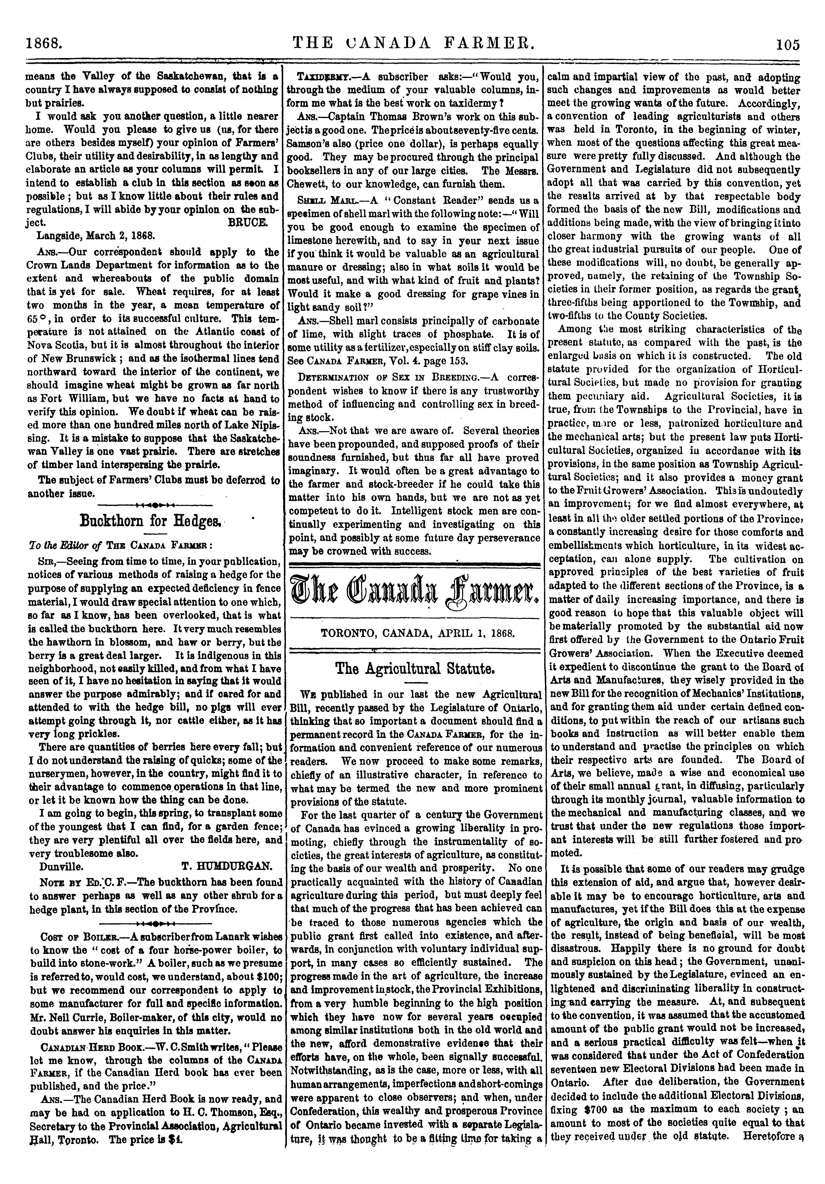 - The Canada farmer [Vol. 5, no. 7 (Apr. 1, 1868)]