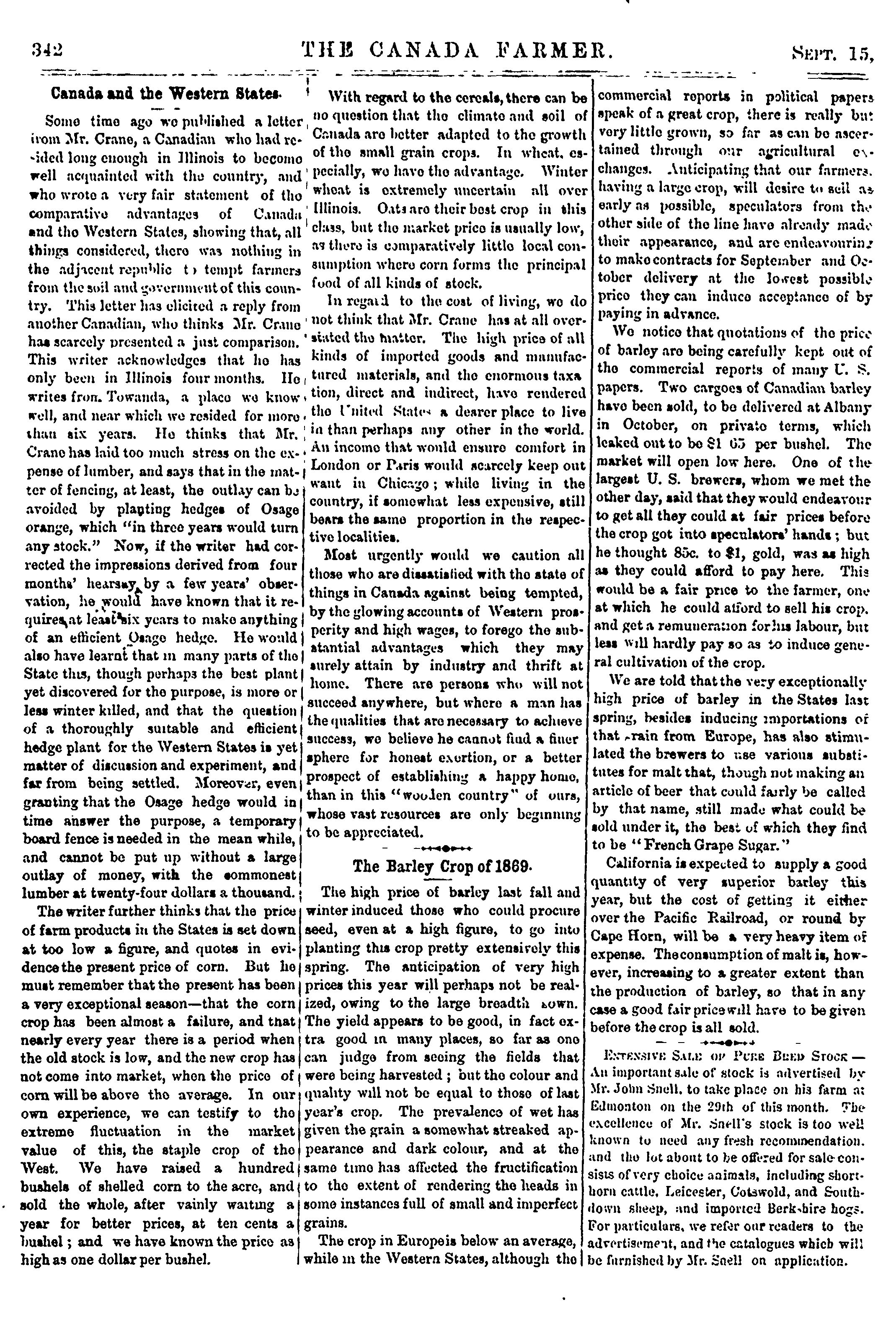 - The Canada farmer [New ser. v. 1, no. 9 (Sept. 15, 1869)]