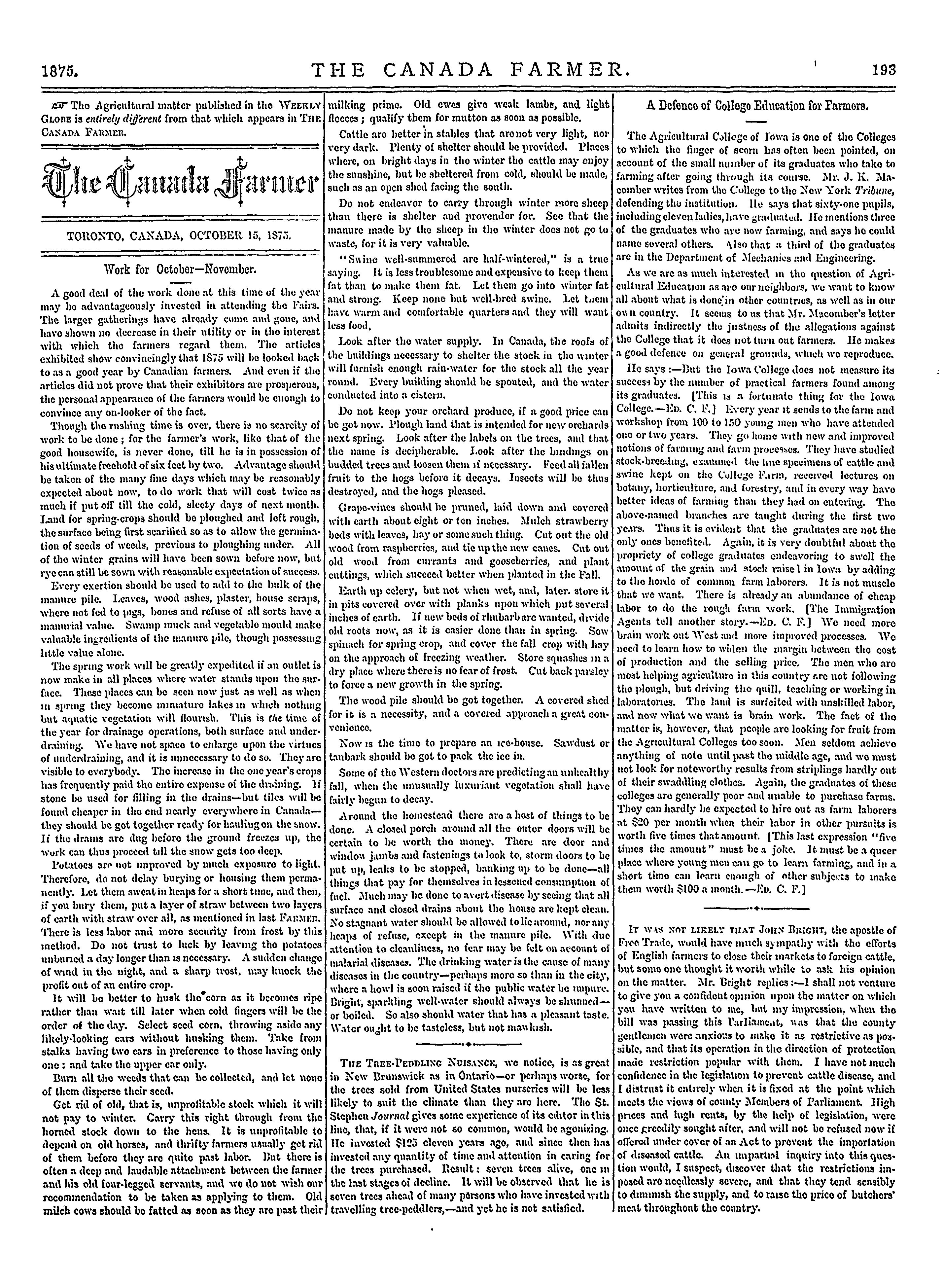 - The Canada farmer [Vol. 12, no. 10 (Oct. 15, 1875)]