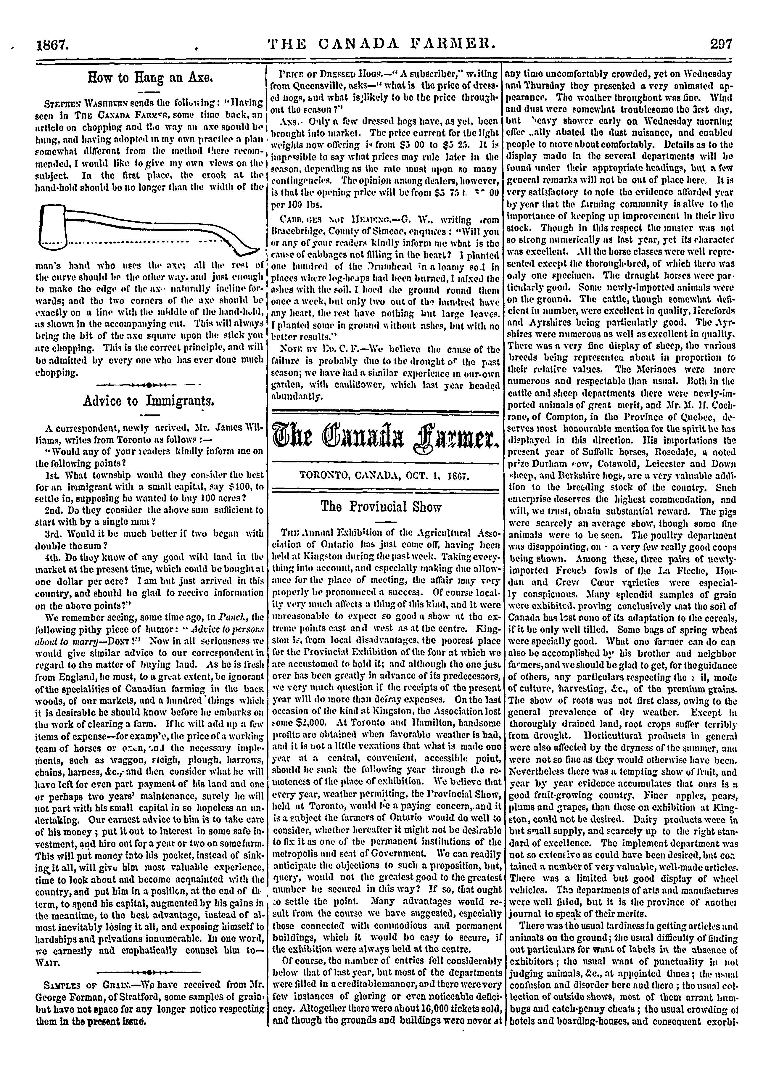 The Canada farmer : [Vol. 4, no. 19 (Oct. 1, 1867)]