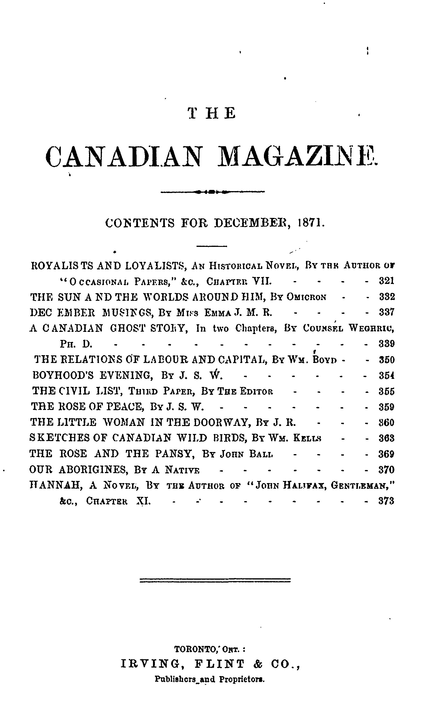 - The Canadian magazine [Vol. 1, no. 6 (Dec. 1871)]