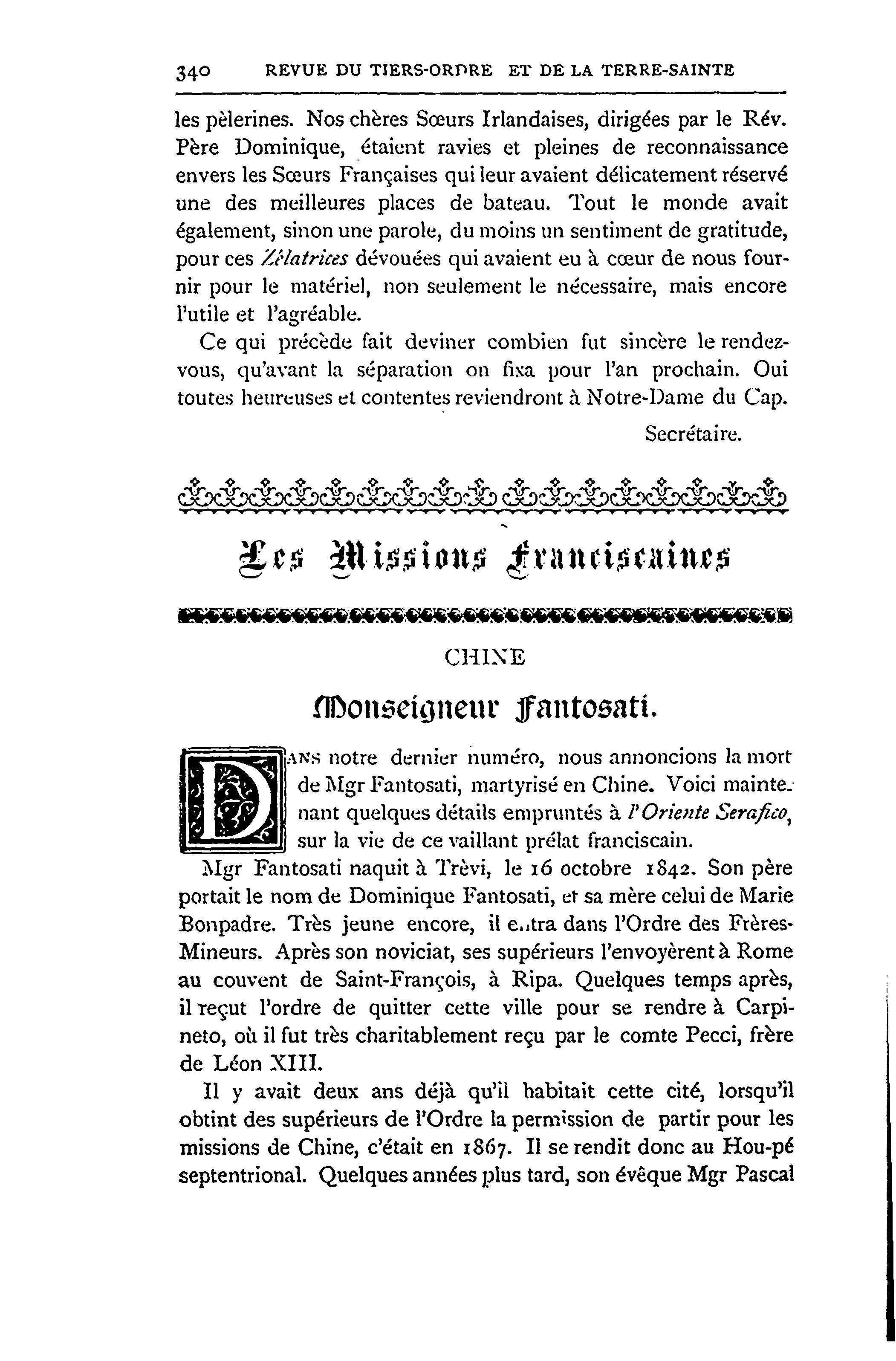 Revue du Tiers-ordre et de la Terre sainte : [16e année, no 10 (1er oct. 1900)]