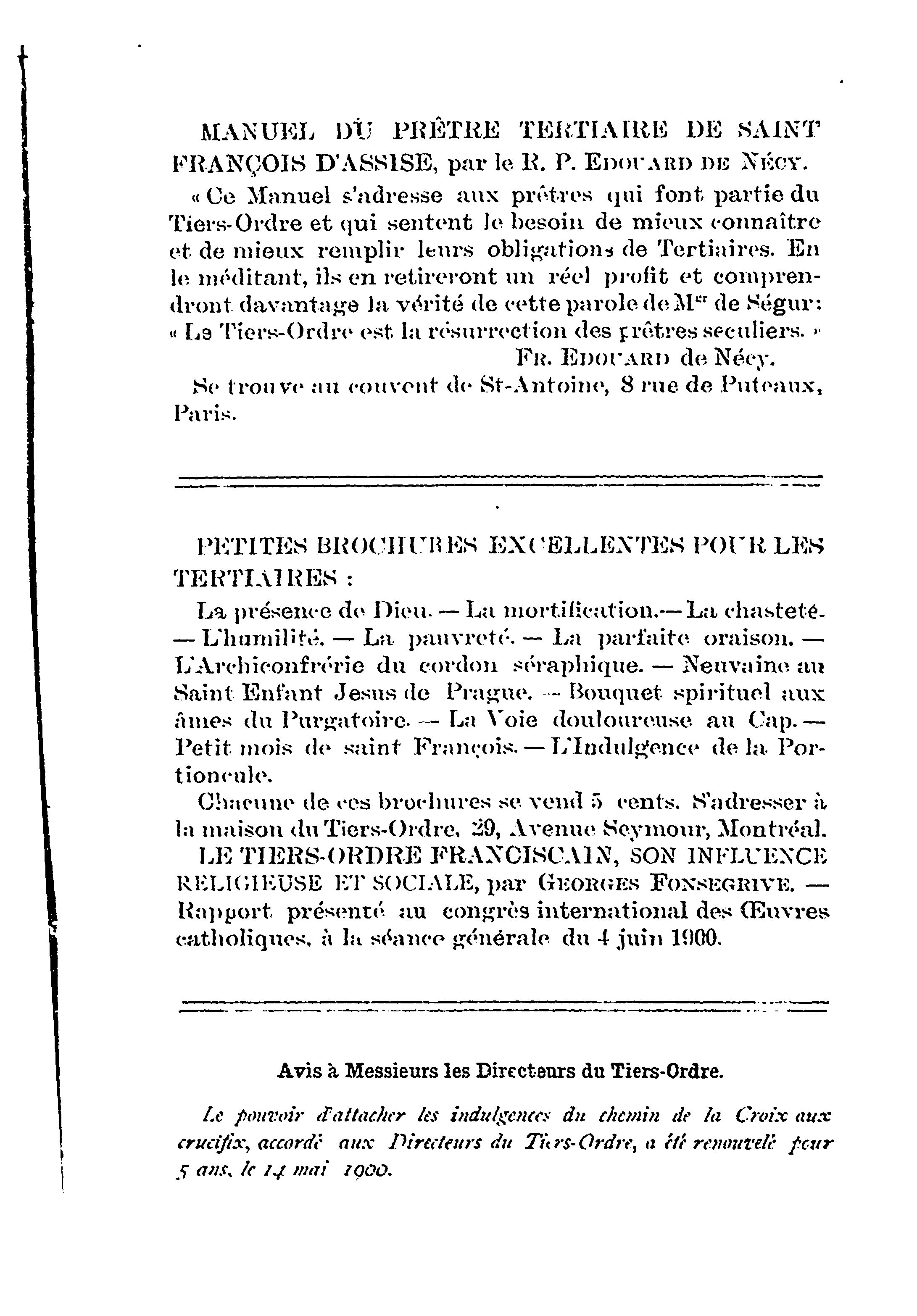Aide [Montréal : Frères mineurs de Montréal, 1900]; 54 images avec recherche en texte intégral