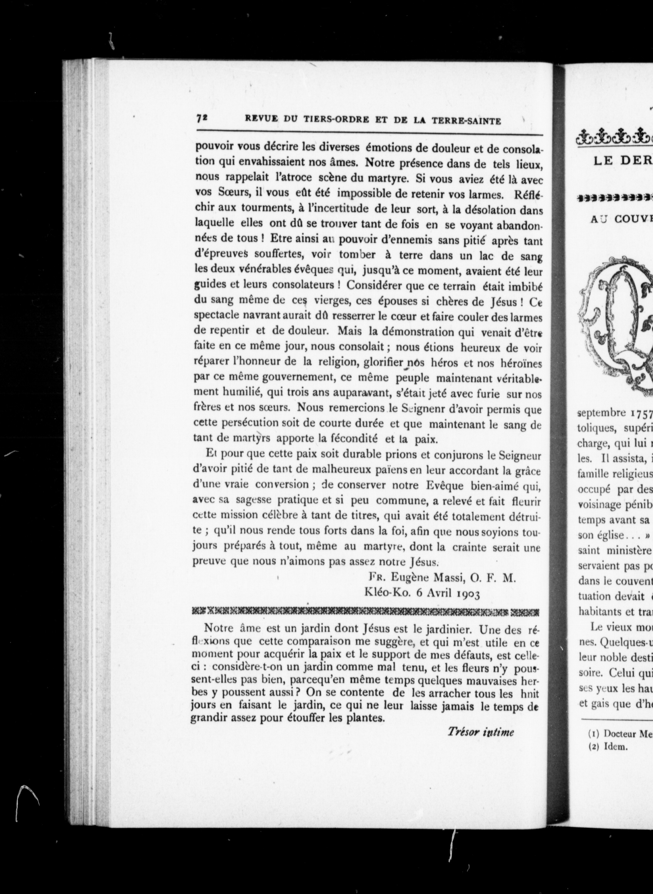 Revue du Tiers-ordre et de la Terre sainte : 20e année, no 2 (1er févr. 1904)