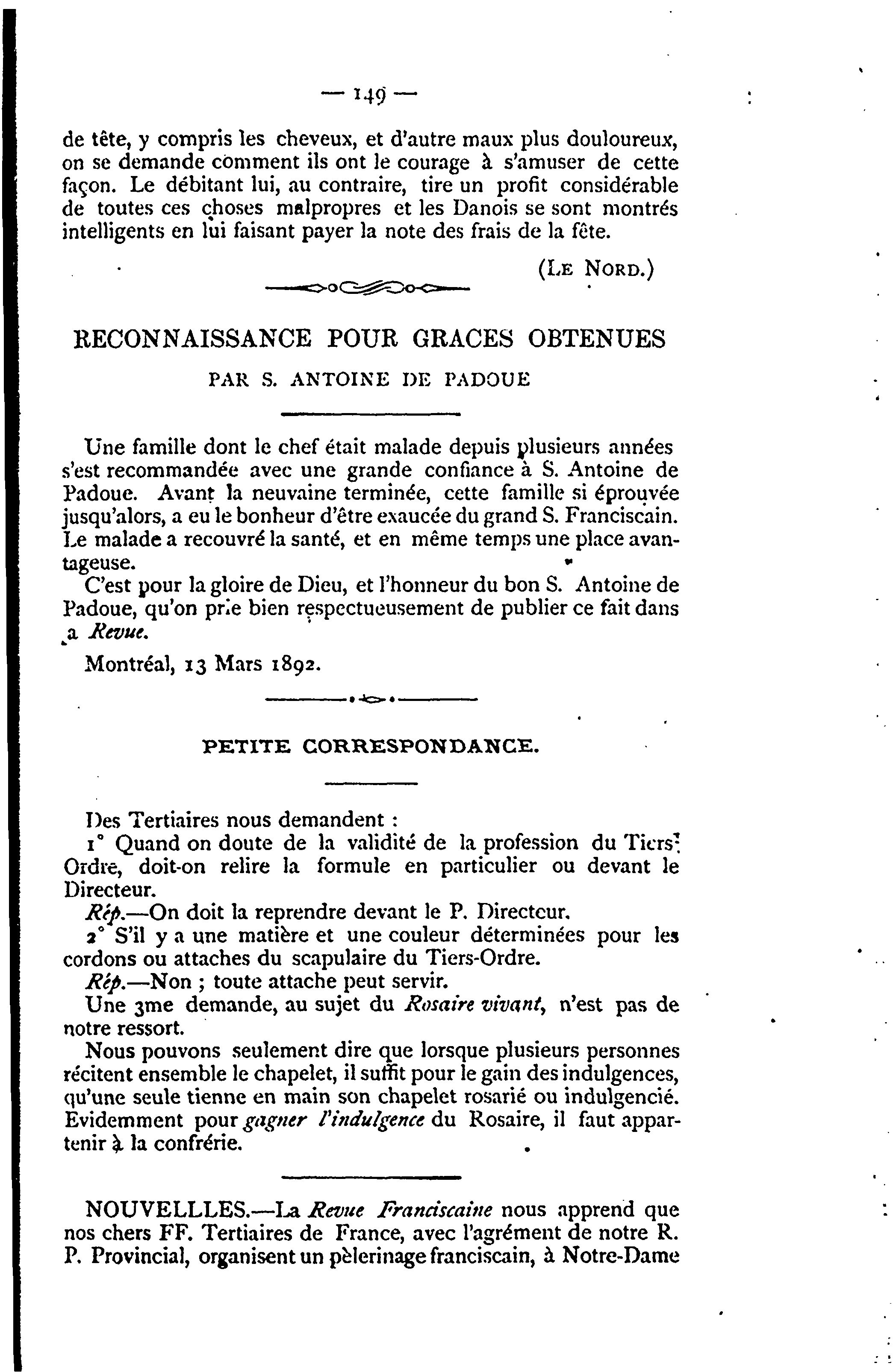 - [Montréal : Franciscains de l'Observance de Montréal, 1892]