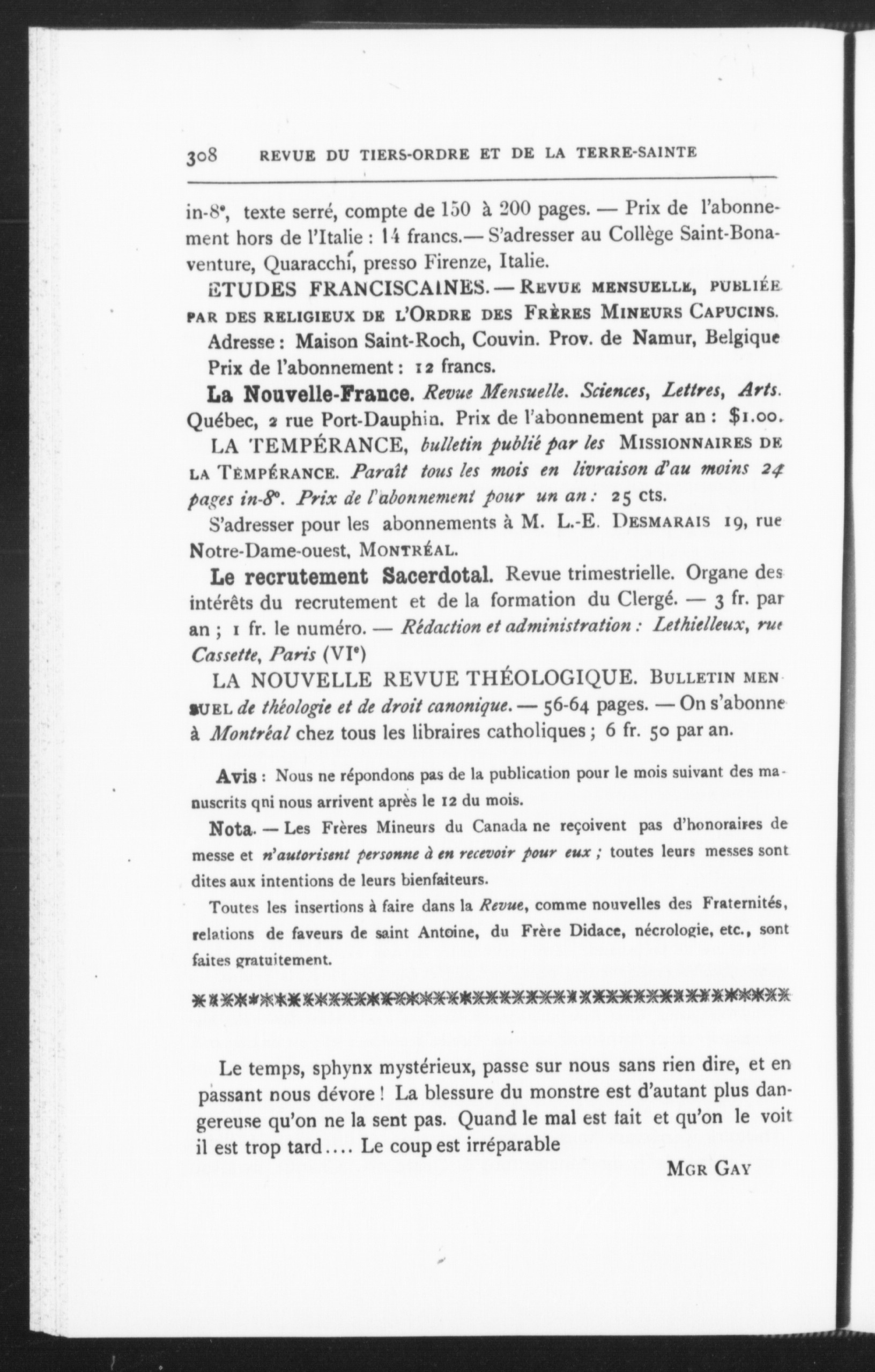 Revue du Tiers-ordre et de la Terre sainte : 25e année, no 6 (juin 1909)