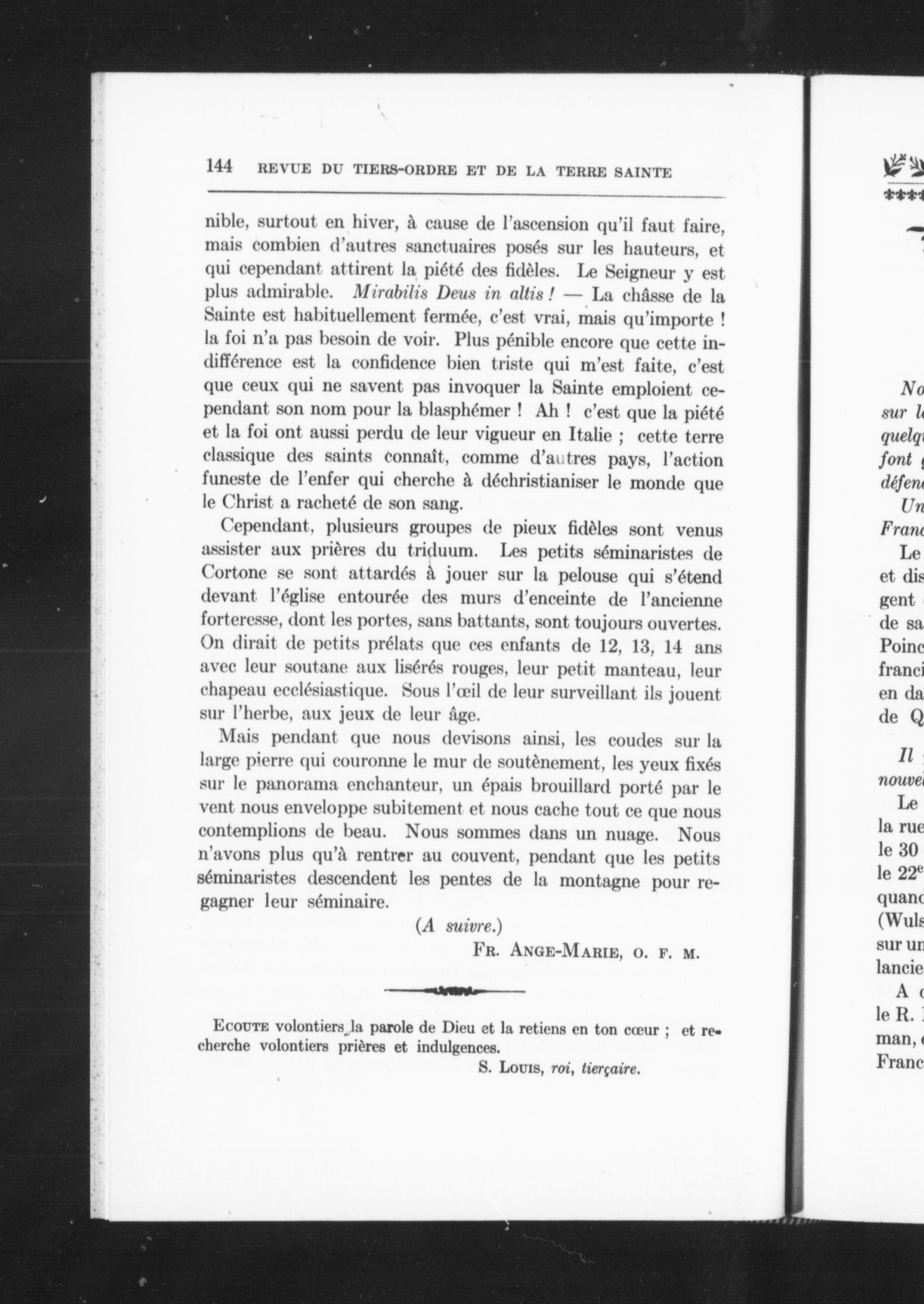 Revue du Tiers-ordre et de la Terre sainte : 32e année, no 3 (mars 1916)