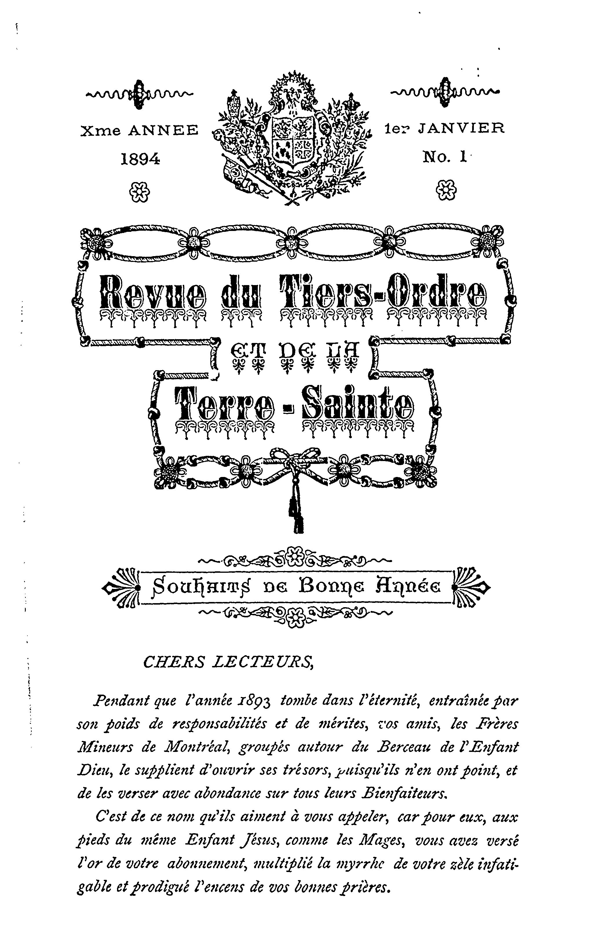 - Revue du Tiers-ordre et de la Terre sainte [10e année, no 1 (1er janv. 1894)]