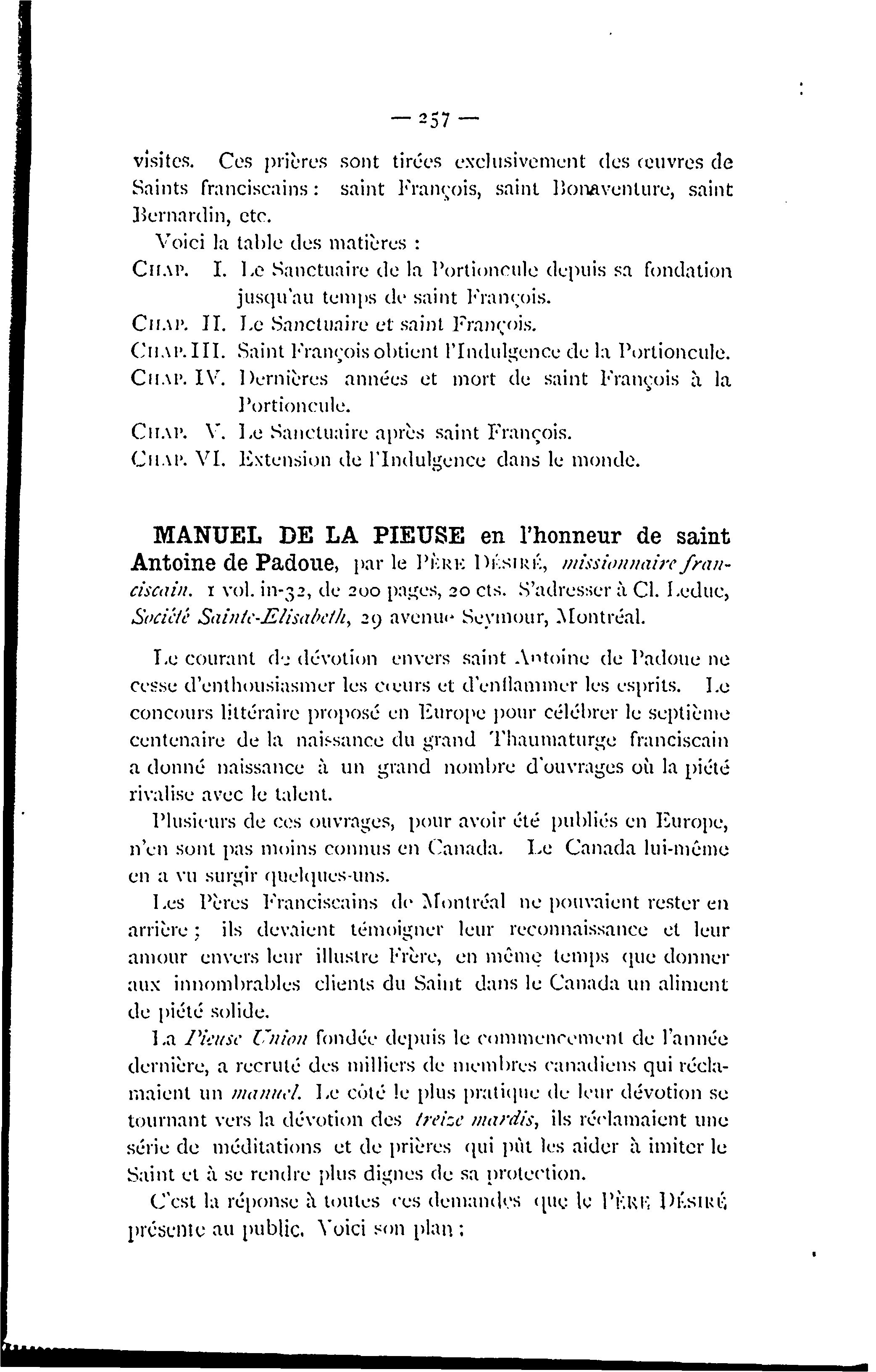 [Montréal : Franciscains de l'Observance de Montréal, 1895]; 37 images avec recherche en texte intégral