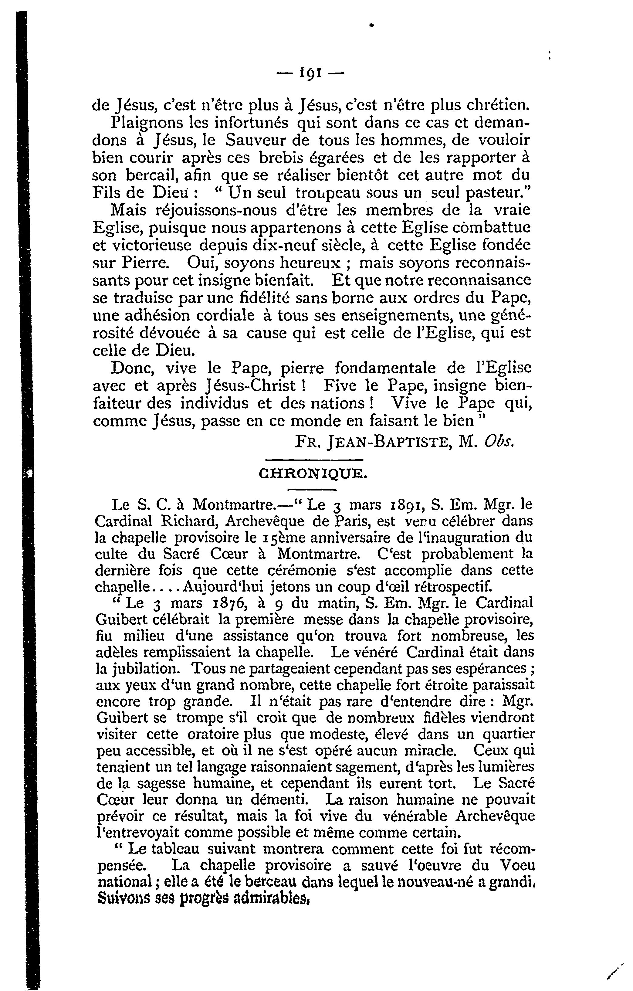 [Montréal : Franciscains de l'Observance de Montréal, 1891]