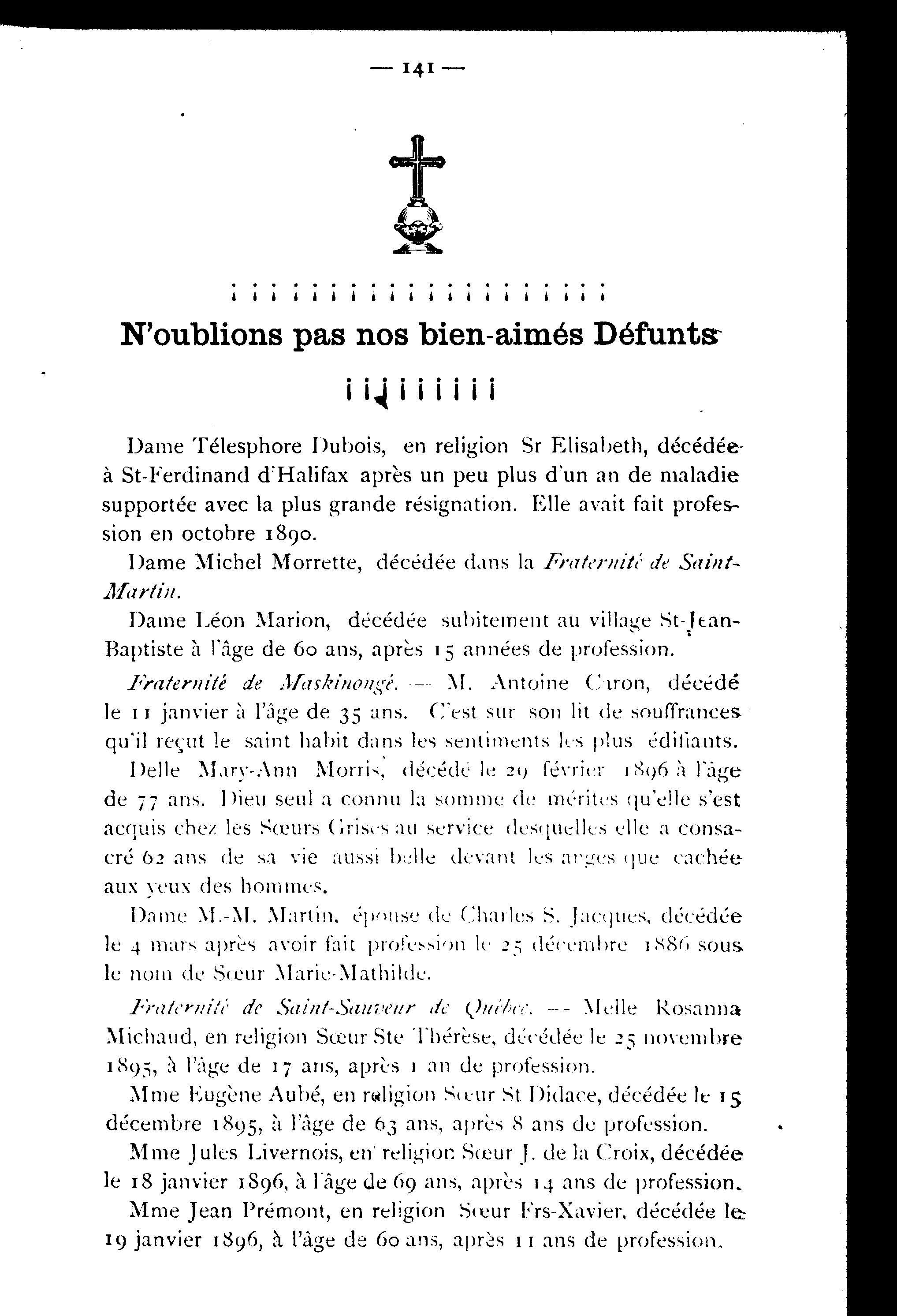 - [Montréal : Franciscains de l'Observance de Montréal, 1896]