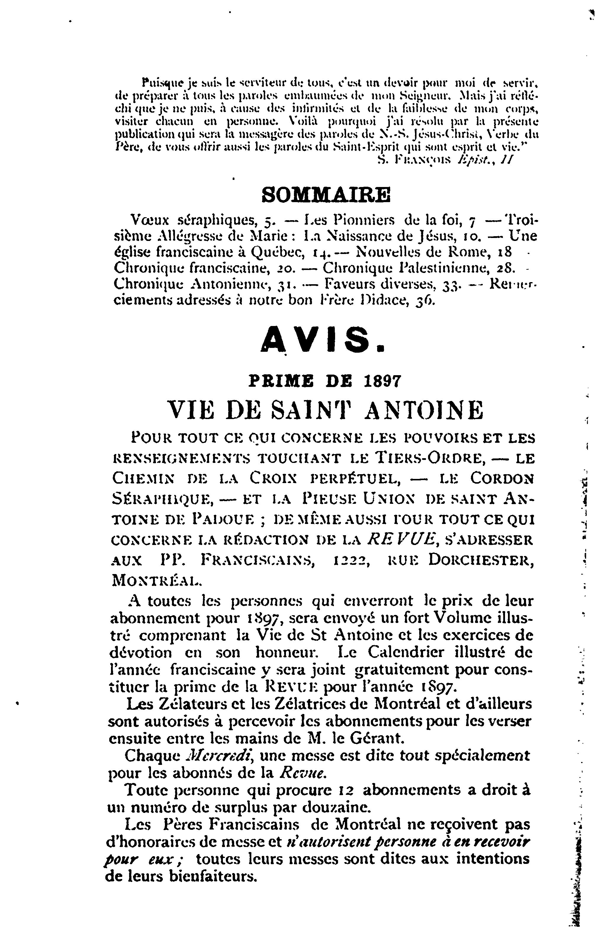 Aide Montréal : Franciscains de l'Observance de Montréal, [1897]; 38 images avec recherche en texte intégral