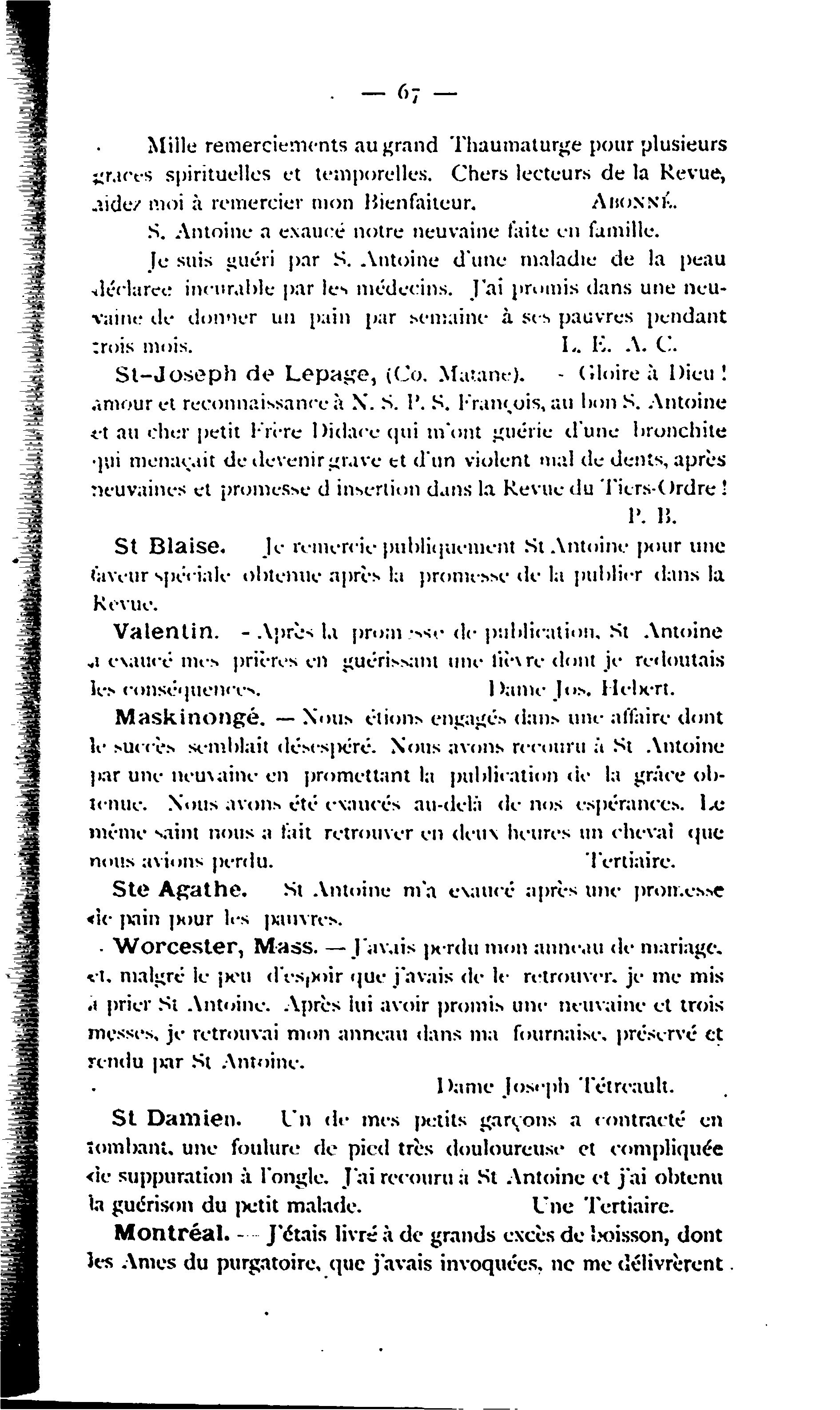 - [Montréal : Franciscains de l'Observance de Montréal, 1897]