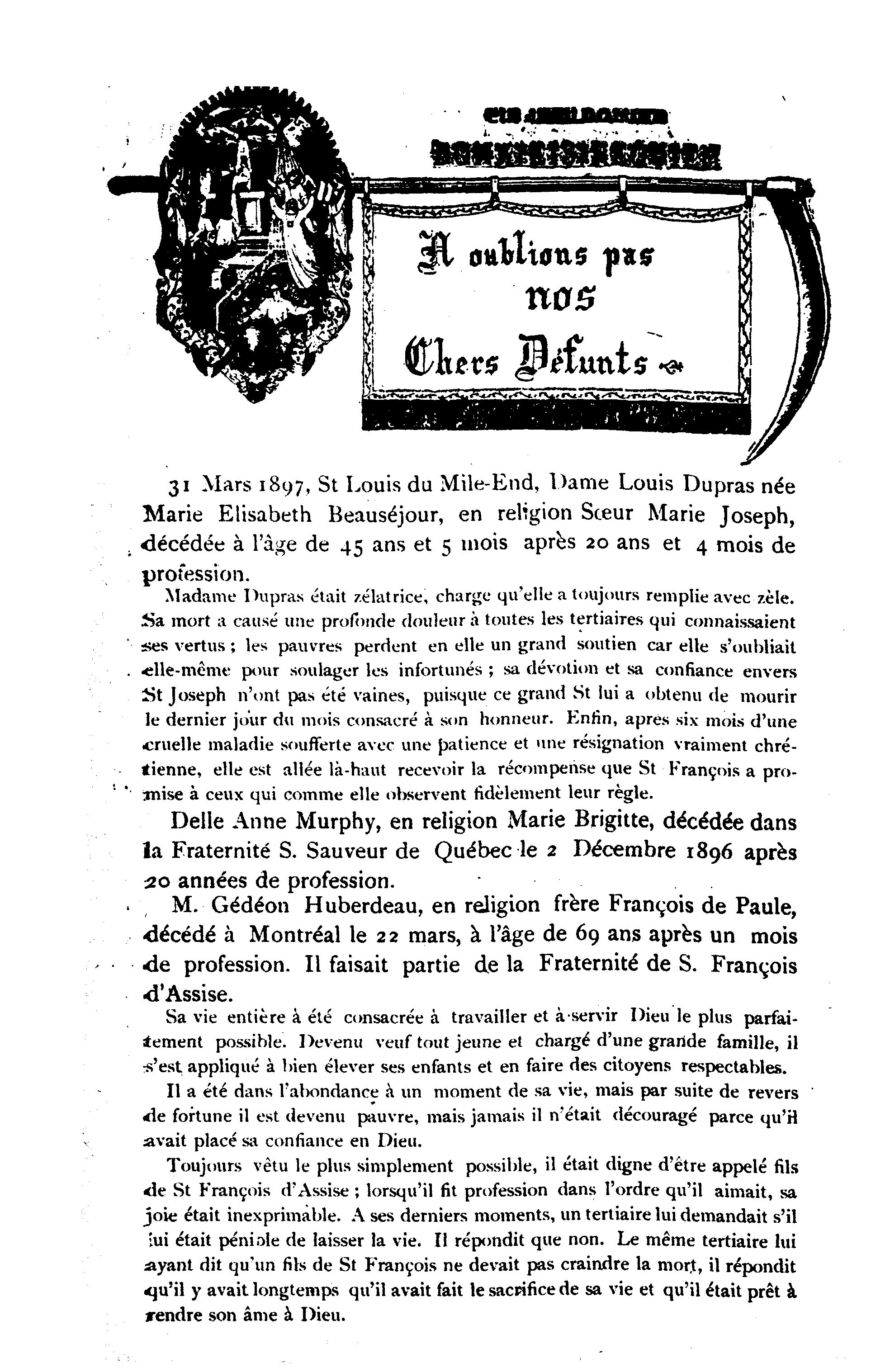 - [Montréal : Franciscains de l'Observance de Montréal, 1897]