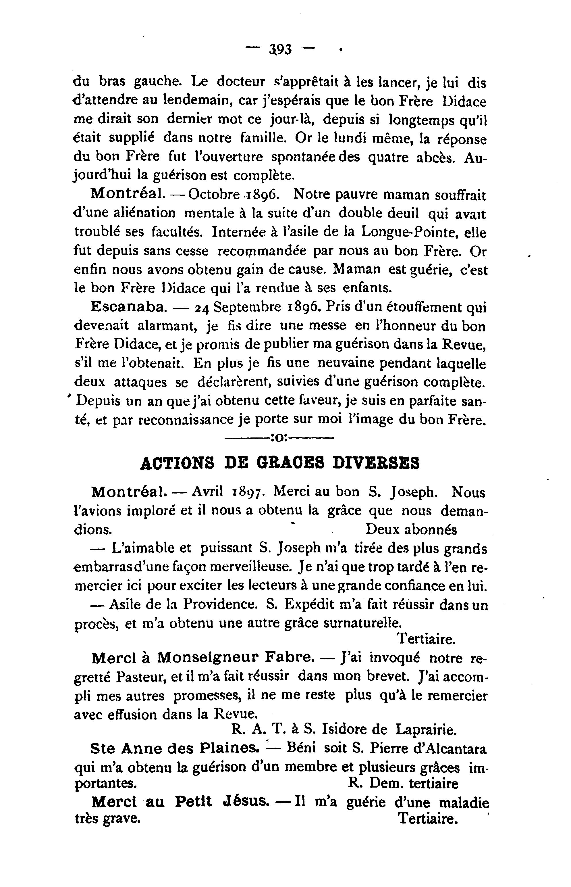 - [Montréal : Franciscains de l'Observance de Montréal, 1897]