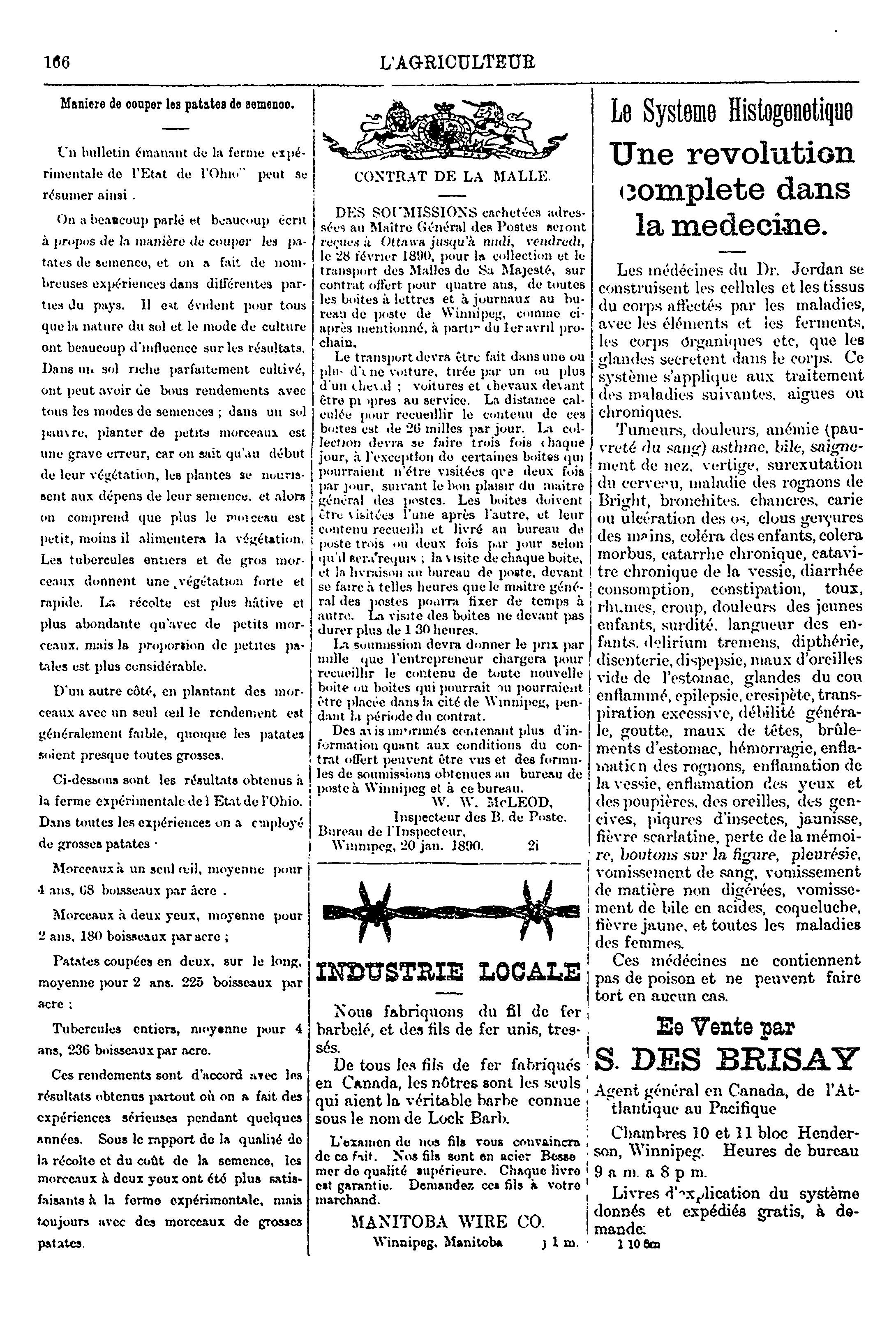 L'agriculteur : [Vol. 1, no 11 (1re févr. 1890)]
