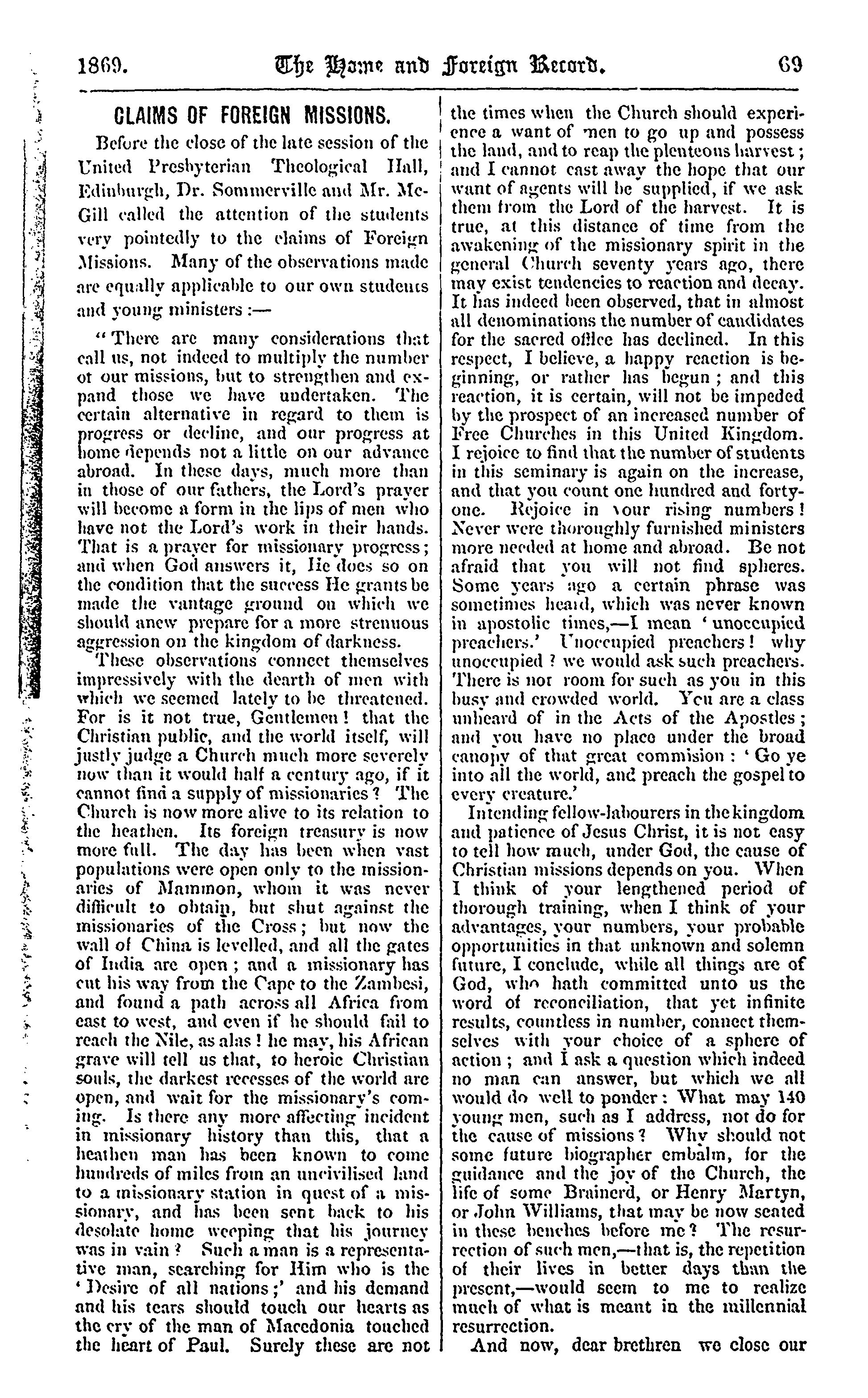 The home and foreign record of the Presbyterian Church of the Lower Provinces of British North America [Vol. 9] (Mar. 1869)]